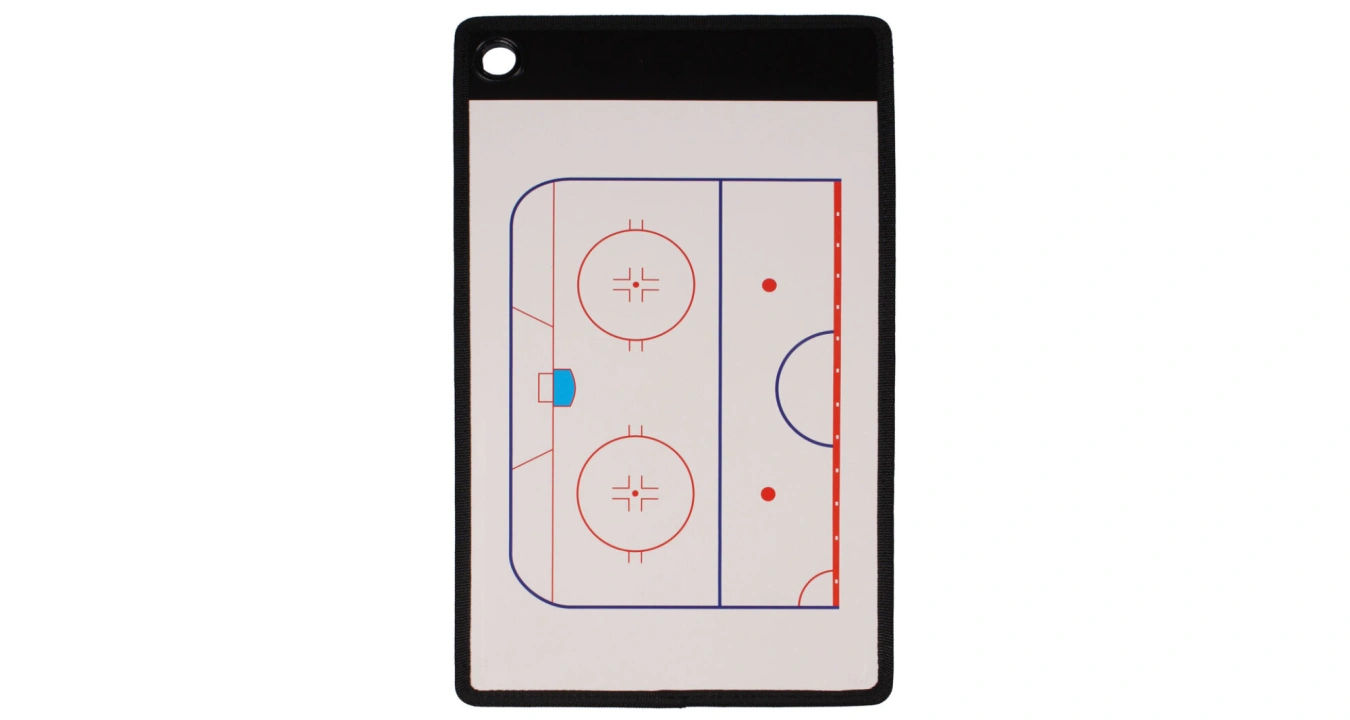 Oboustranná magnetická tabule na hokej pro trenéry a kluby. Rozměry 38 x 23 cm.