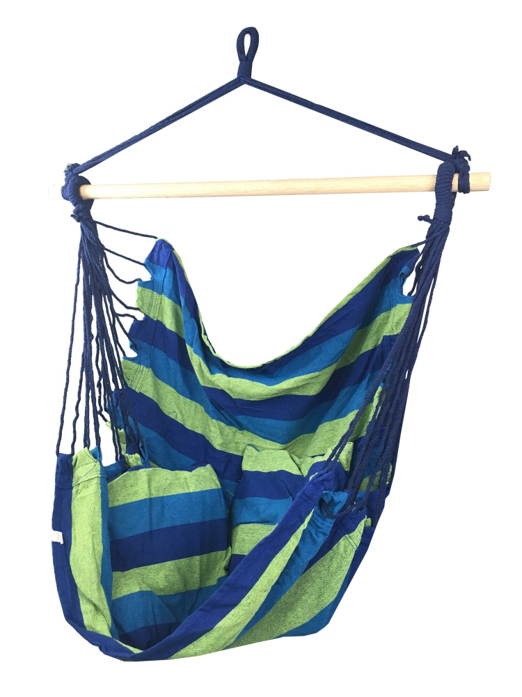 Houpací závěsné křeslo SEDCO SWING s polštářky zelená/modrá