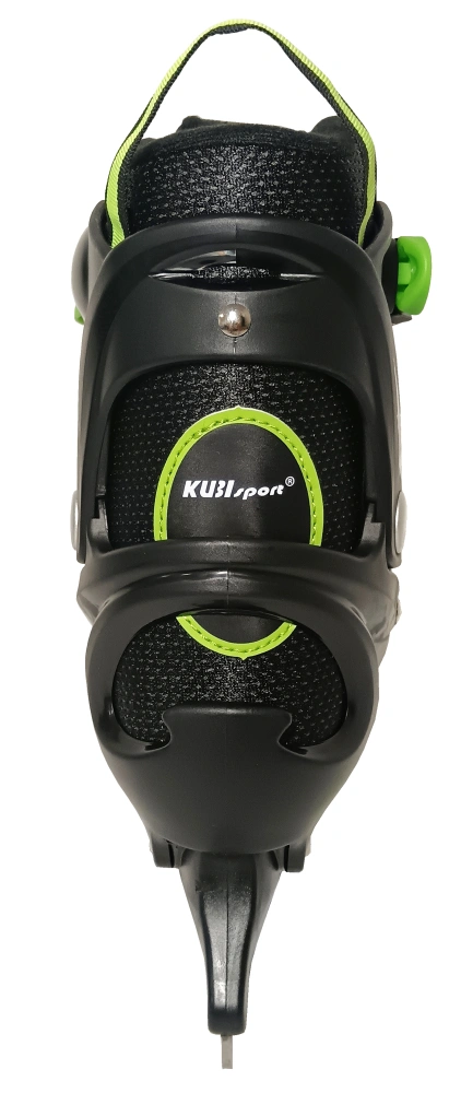 Hokejové brusle, roztahovací - 4 velikosti v jedné botě díky jednoduchému mechanismu na zvětšování a zmenšování skeletu bot. Rozsah nastavení boty na čtyři velikosti 32 - 35 = 20,3 - 22,3 cm. Délka vnitřní stélky, při nejmenší nastavené velikosti, činí 20,3 cm. Brusle jsou tvořeny plastovým skeletem a vnitřní textilní botičkou, která má měkkou výstelku pro zabezpečení nejvyššího komfortu. Pro dosažení řádného upevnění na nohu je k dispozici klasické šněrování, textilní přezka na suchý zip a plastová přezka slouží k dokonalemu upnutí boty na nohu. Brusle mají vodoodpudivou povrchovou úpravu (impregnaci), která zabraňuje pronikání vlhkosti do boty a zároveň tak brání prochladnutí nohy. Přesto doporučujeme občas brusle naimpregnovat běžně dostupnými impregnačními prostředky. Brusle mají hokejový nůž.