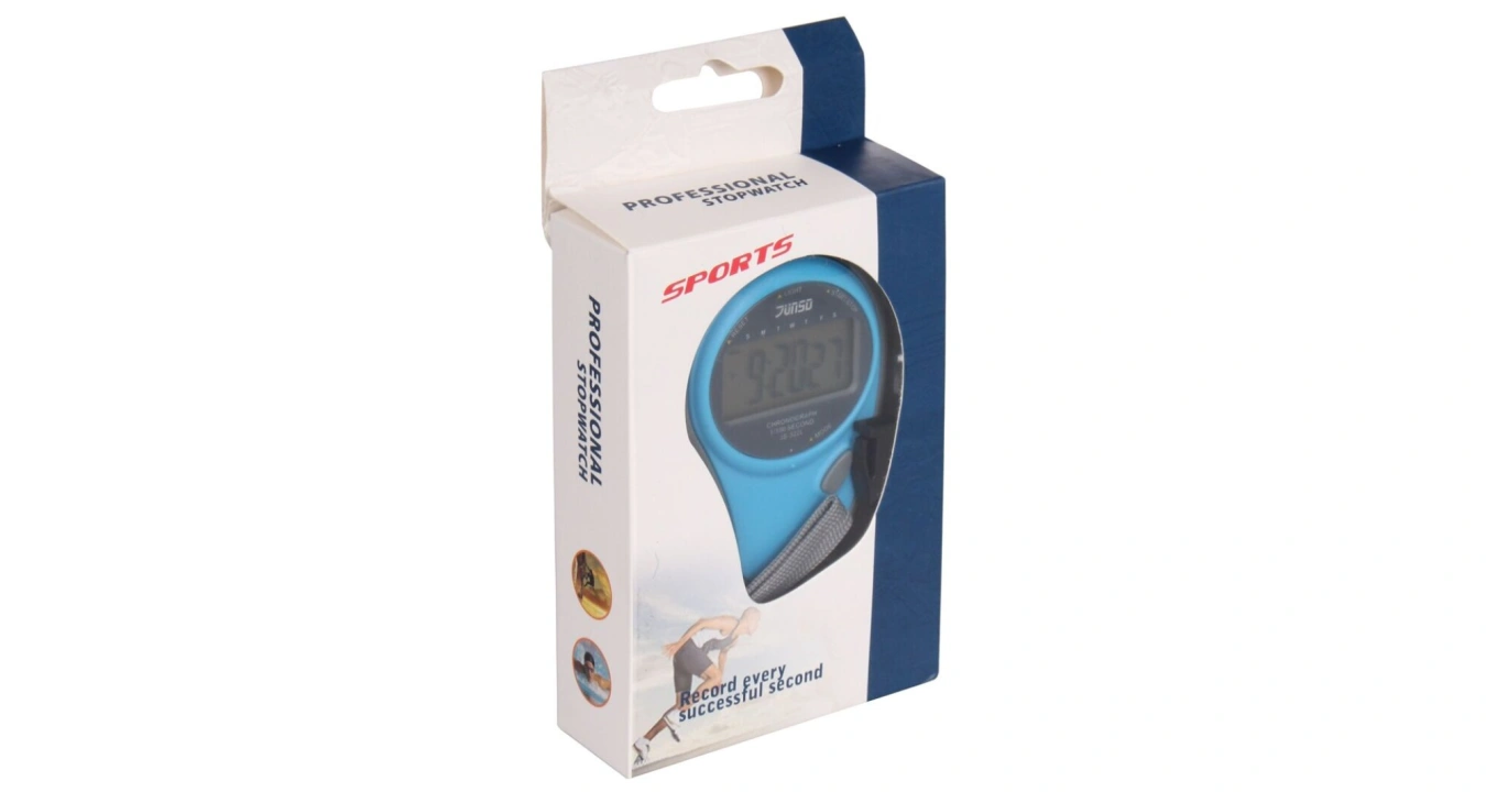 Sportovní stopky s funkcí podsvícení displeje. Jednoduché ovládání, výhodná cena.