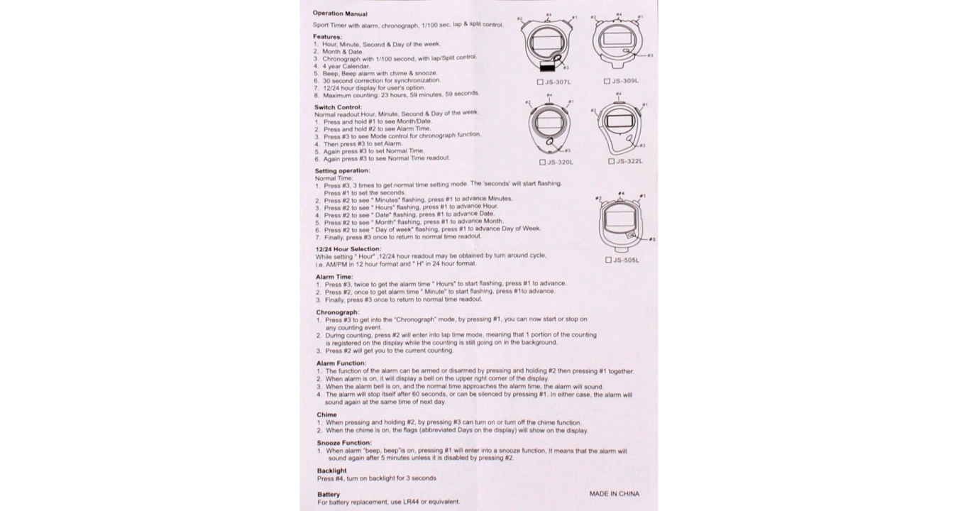 Sportovní stopky JUNSD JS-322L jsou díky své nízké ceně a jednoduchému ovládání vhodné pro každého trenéra, školy, sportovní oddíly nebo sportovce, kteří chtějí mít přehled o časech svých výkonů. Oproti klasickému modelu JS-322 nabízí navíc praktickou funkci podsvícení displeje. Součástí balení je i šňůrka na krk.