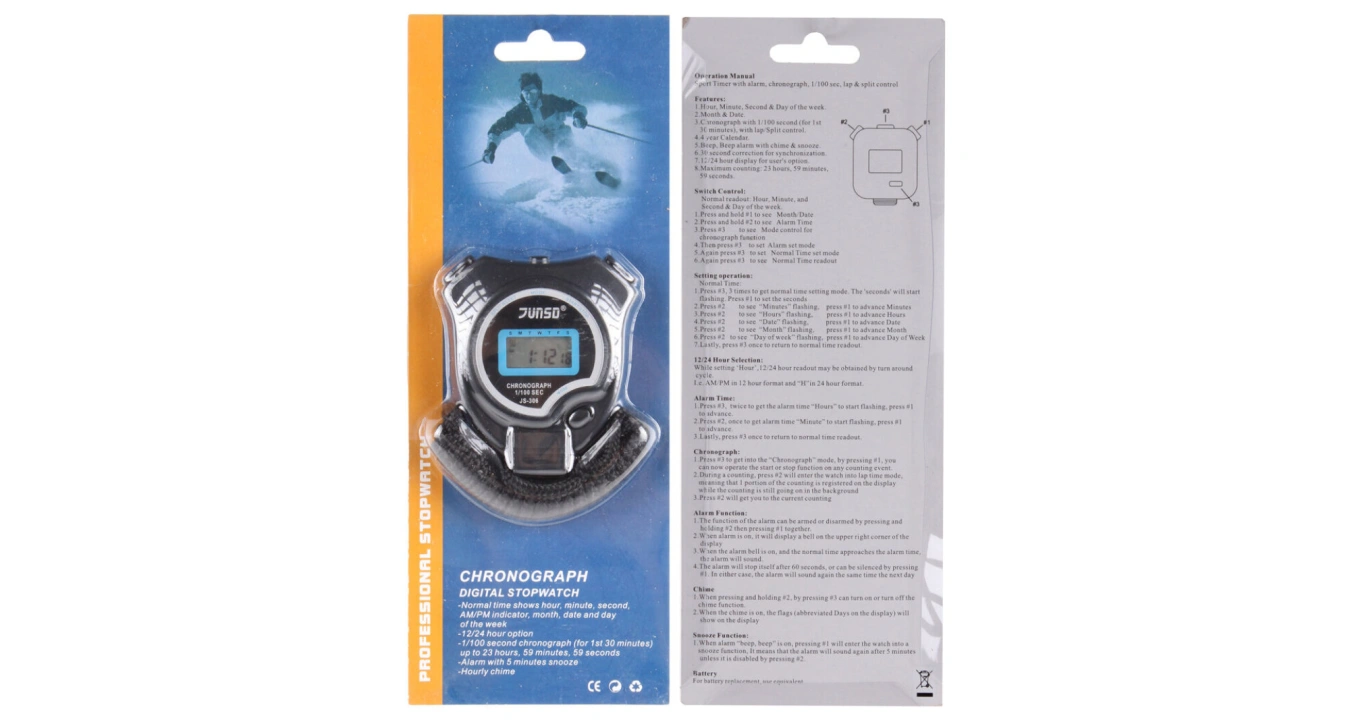 Kvalitní Stopky Junso JS306D ukazují jeden mezičas. Mají budík i hodinové pípnutí. Stopky ukazují s přesností na 1/100s. Mohou fungovat namísto hodinek. Ukazují čas i datum. Součástí stopek je šňůrka, která sníží riziko jejich ztráty nebo poškození z důvodu pádu.