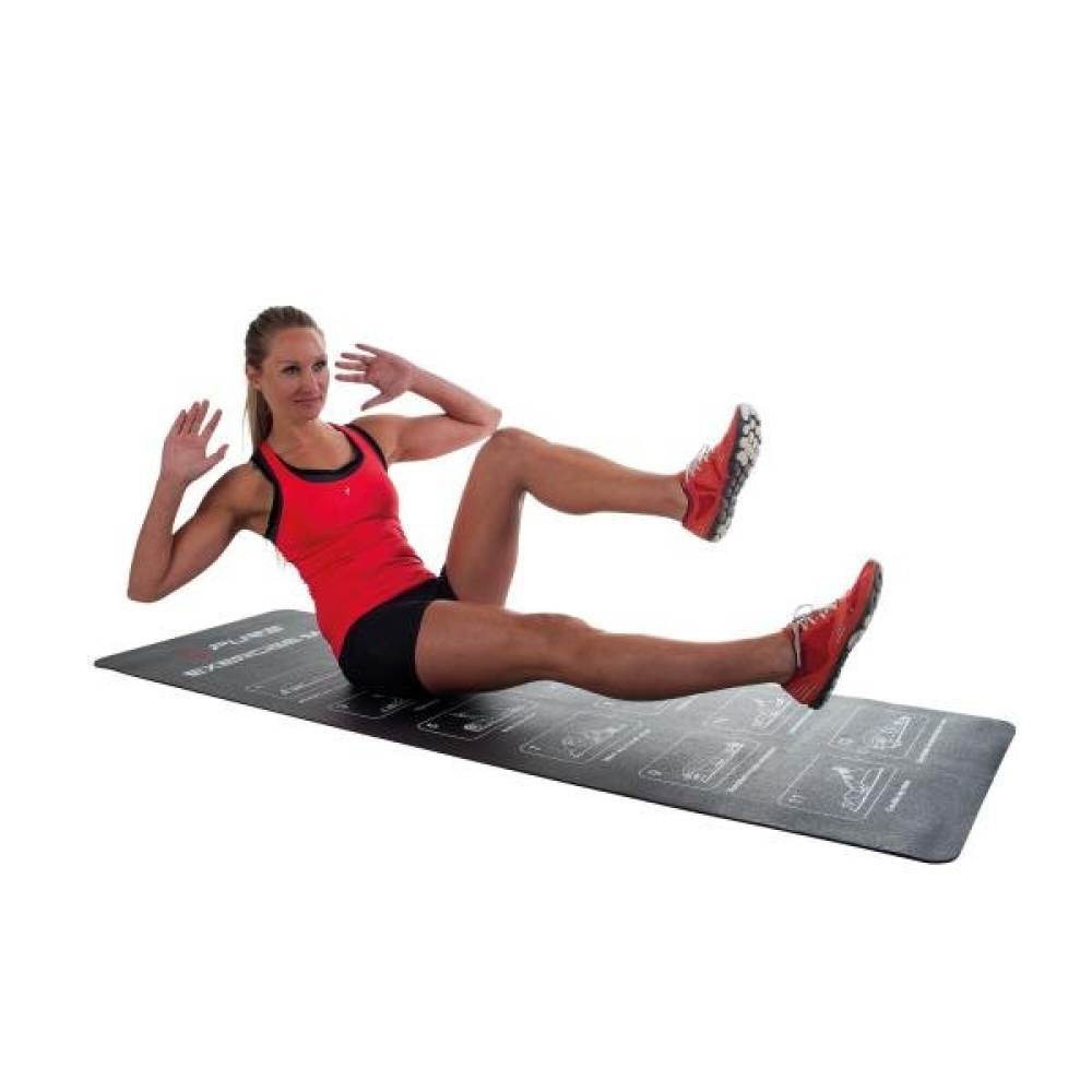 Univerzální karimatka určená pro jógu, aerobic, fitness cvičení. Karimatka má protiskluzový a snadno čistinelný povrch. Na karimatce je ilustrováno 12 cviků ve dvou kategoriích.