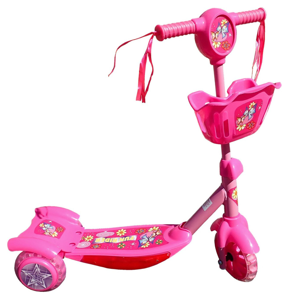 Koloběžka dětská je určena pro děti od 2 - 3 let. Materiál je ocel + plast. Kolečka jsou plastová, o průměru - přední 15 cm a zadní 11 cm. Rozměry výrobku - 54 x 21 x 58 cm, délka stupátka ( plocha pro nášlap nohy ) je 24 cm. Hmotnost koloběžky - 2,1 kg. Nosnost výrobku 30 kg. K dispozici v barvě růžové.