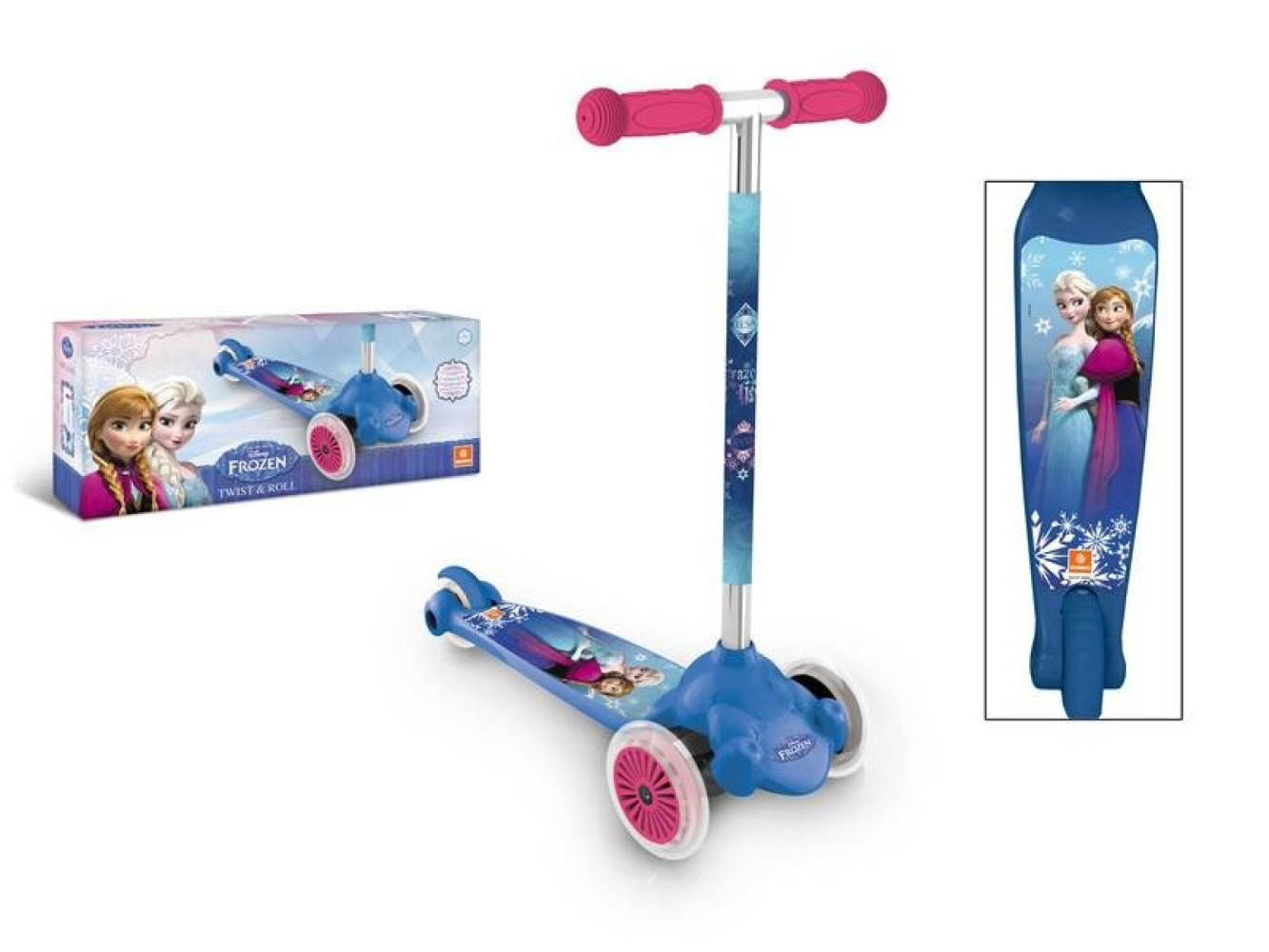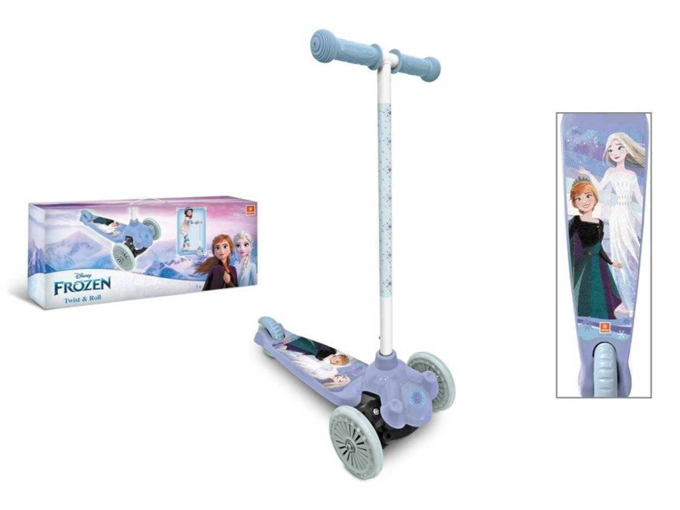 Pro nejmenší děti - dvě přední kolečka ovládaná pomocí náklonu řidítek. Koloběžka vyniká díky originálnímu designu s motivem Frozen/Ledové království. Motiv Frozen je dodáván dle aktuálních skladových zásob.