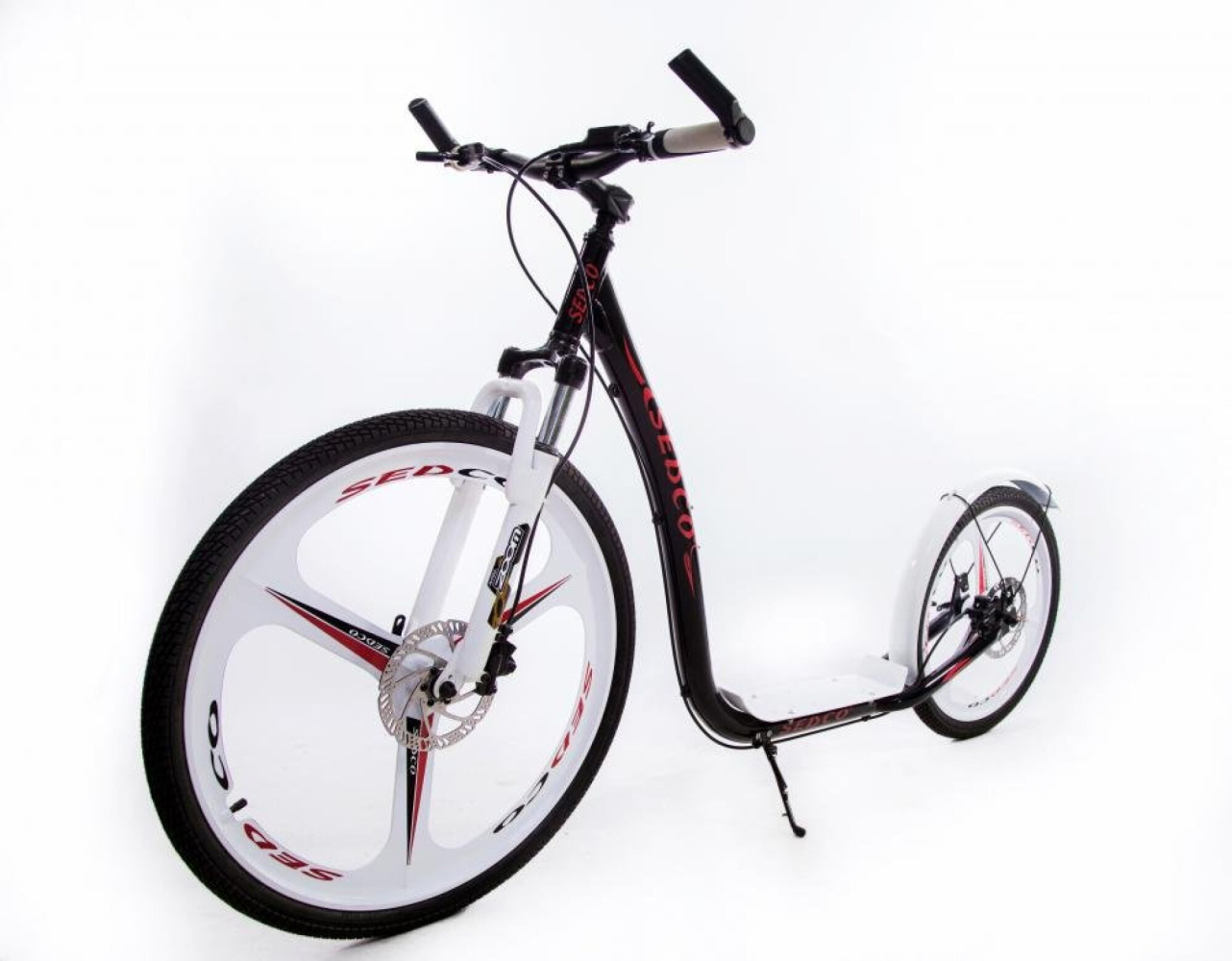 Zcela nový model koloběžky Sedco 2018/19. Nový model přináší, kromě značného zlepšení jízdních vlastností, také zcela novou originální konstrukci slitiny magnésiových kol. Nová technologie (Magnesium Alloy Wheels) znatelně zlepšuje výdrž, celkovou životnost a jízdní vlastnosti koloběžky. Zajišťuje tedy naprostou stabilitu při jízdě, která, v kombinaci se špičkovými hydraulickými kotočouvými brzdami TEKTRO na minerální olej, přinese zcela nový požitek z naprosto bezpečné jízdy.