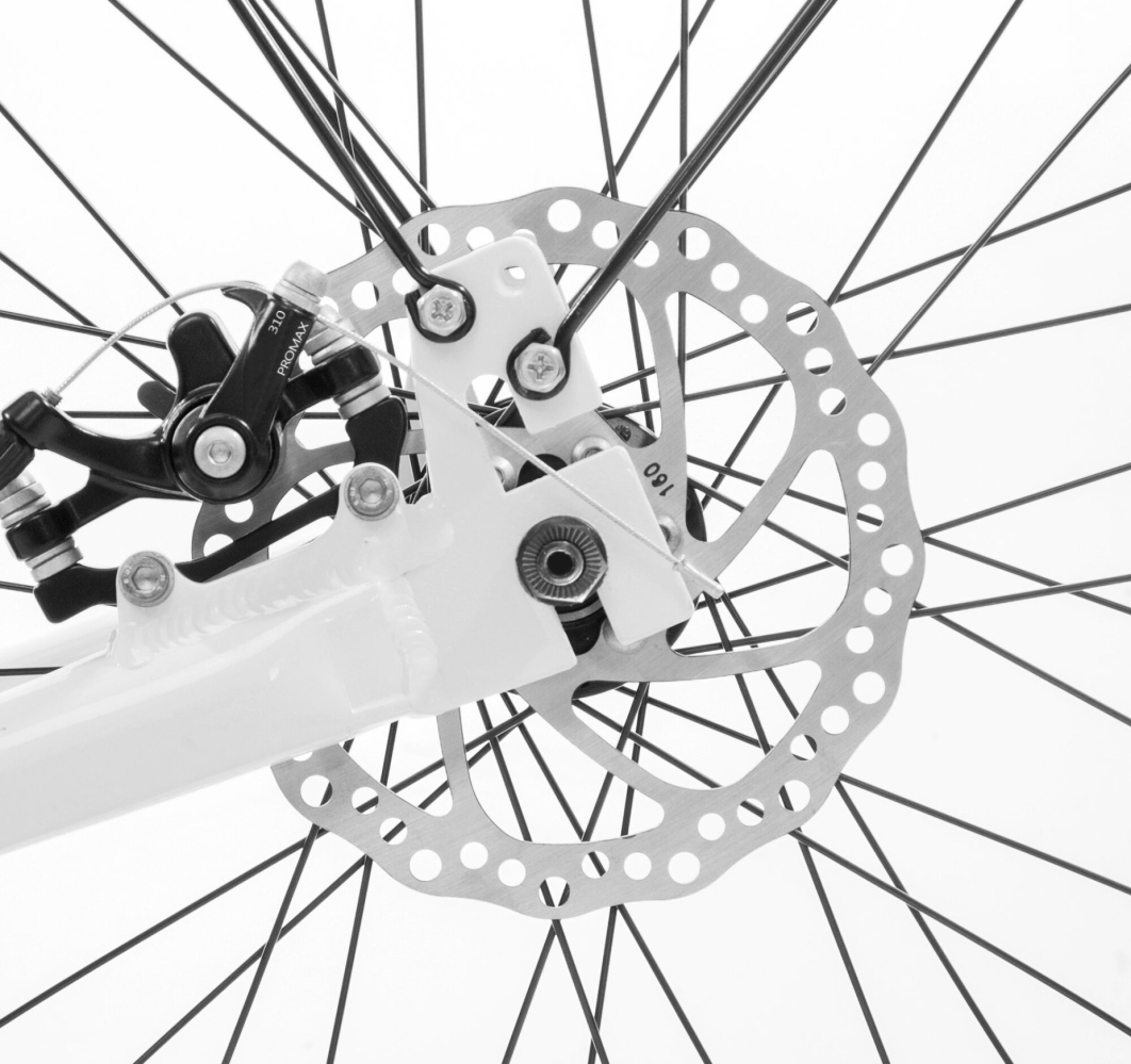 Na bezpečnosti se podílí také kvalitní kotoučové brzdy PROMAX 310, které neztrácí brzdný účinek ani při dlouhém a intenzivním brzdění. Kola jsou obuta ve spolehlivých pláštích WD s rozměry 26*2.125, 20*2.125. Díky vysoké tuhosti řešení rámu s krátkým rozvorem se energie při odrazu neztrácí, ale je s maximální účinností přenášena do přímého směru jízdy. Nášlapná plocha však zůstala dostatečně dlouhá a umožňuje i stání sounož.