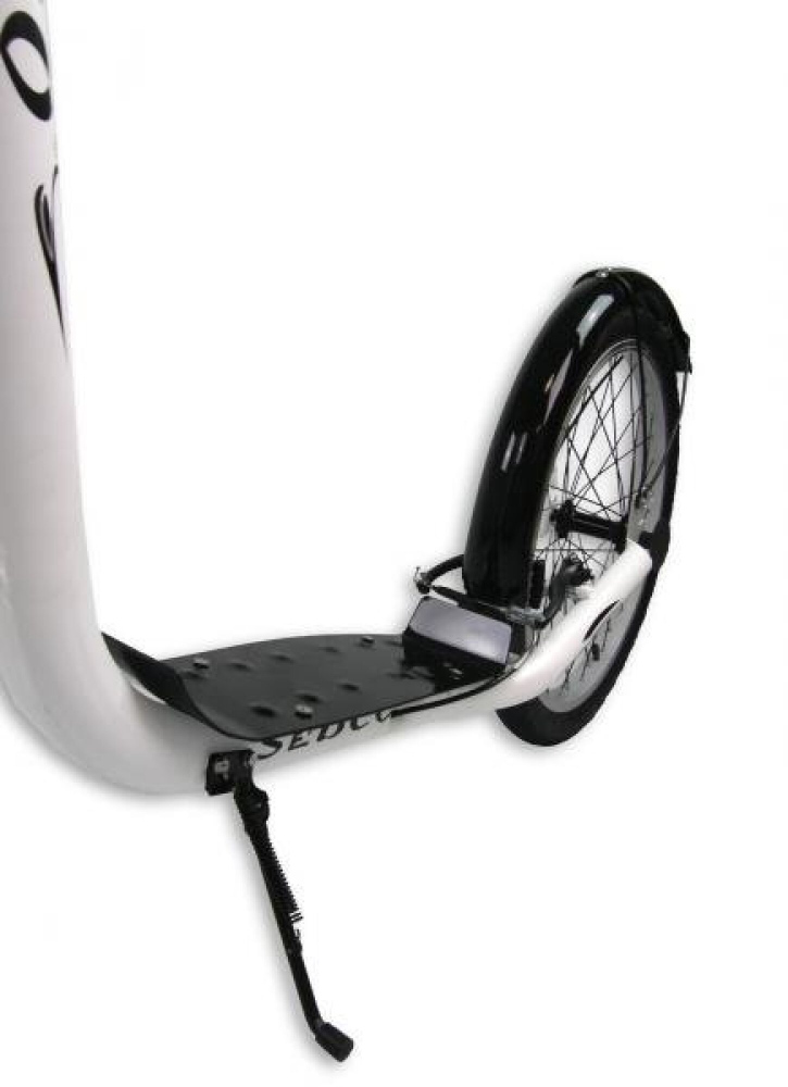Vynikající jízdní vlastnosti a stabilita i při vyšších rychlostech jsou dány krátkou vzdáleností kol (rozvorem) koloběžky. Nášlapná plocha však zůstala dostatečně dlouhá a umožňuje i stání sounož. Kolobežka má moderní design.