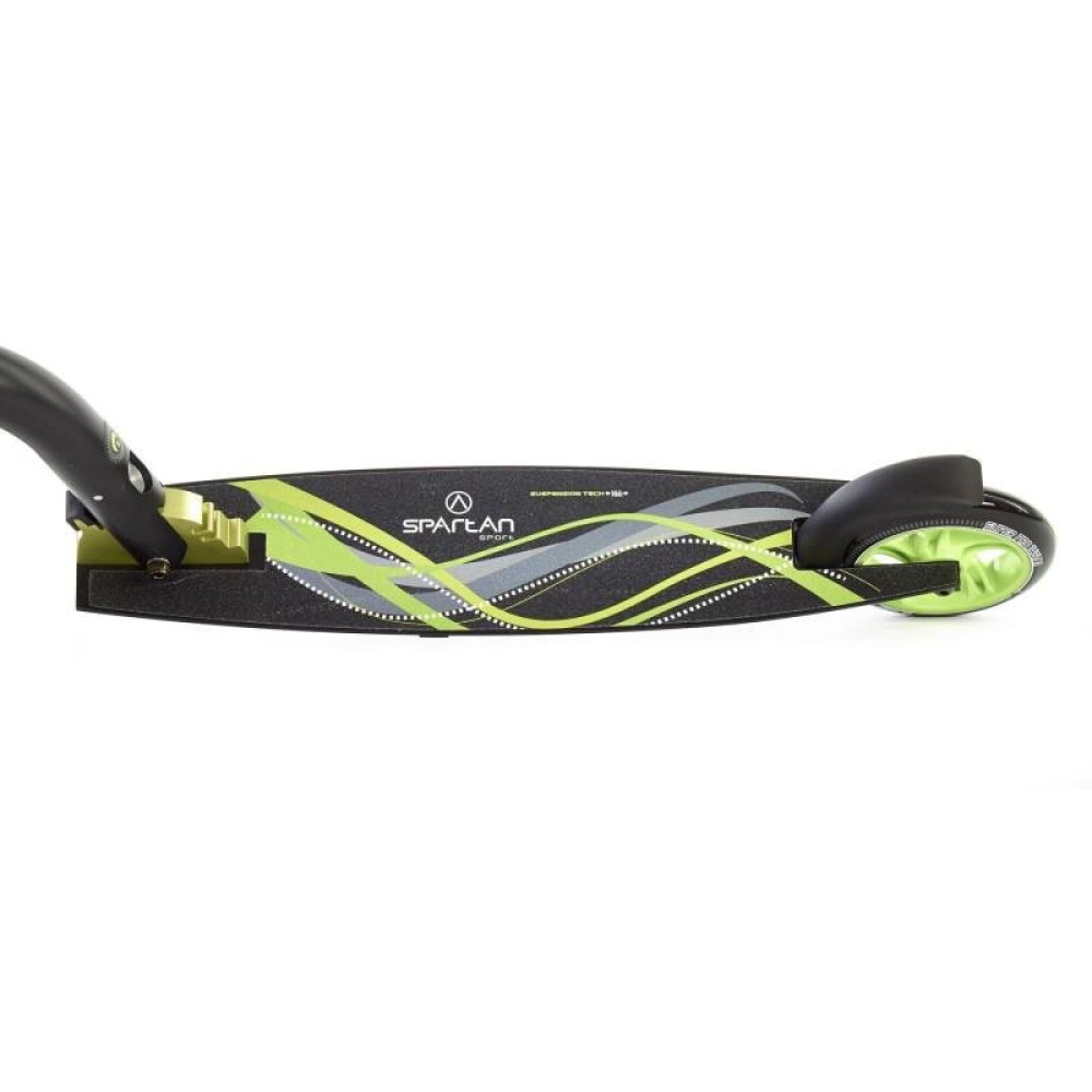 Hliníková skládací koleběžka s odpruženým předním kolečkem. Koloběžka je postavena na rubustním hliníkovém rámu, větší přední a menší zadní kolečko zajišťuje výbornou stabilitu a dynamiku jízdy. Výškově nastavitelná řidítka a sot gripy přispívají k maximálnímu pohodlí. K nadstandardnímu vybavení dále patří velmi tichá a účiiná brzda FLEX. Koloběžku lze díky systému "Push and Go" během okamžiku složit a zapomoci popruhu vzít kamkoliv s sebou.