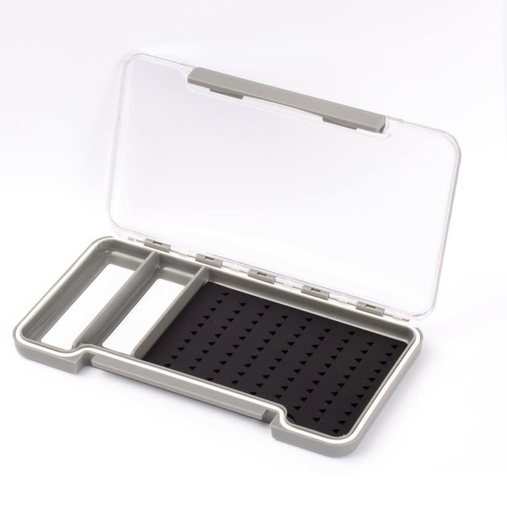 Muškařská krabička ve standartním rozměru, kompaktní a výborně se hodí na uskladnění vaších mušek. Její výhodou je transparentní víko, které nám dává absolutní přehled nad uspořádáním jednotlivých mušek. Vyplň krabičky je z černé silikonové pěny a díky rychlému a bezpečnému vodě odolnému uzávěru jsou maximálně v bezpečí. Navíc krabička obsahuje dvě magnetická políčka pro upevnění hlaviček pro dodatečné doplnění váhy nebo pro suché mušky. Na krabičce je také natištěno mezinárodní měřítko háčků pro přesnou délku háčku.