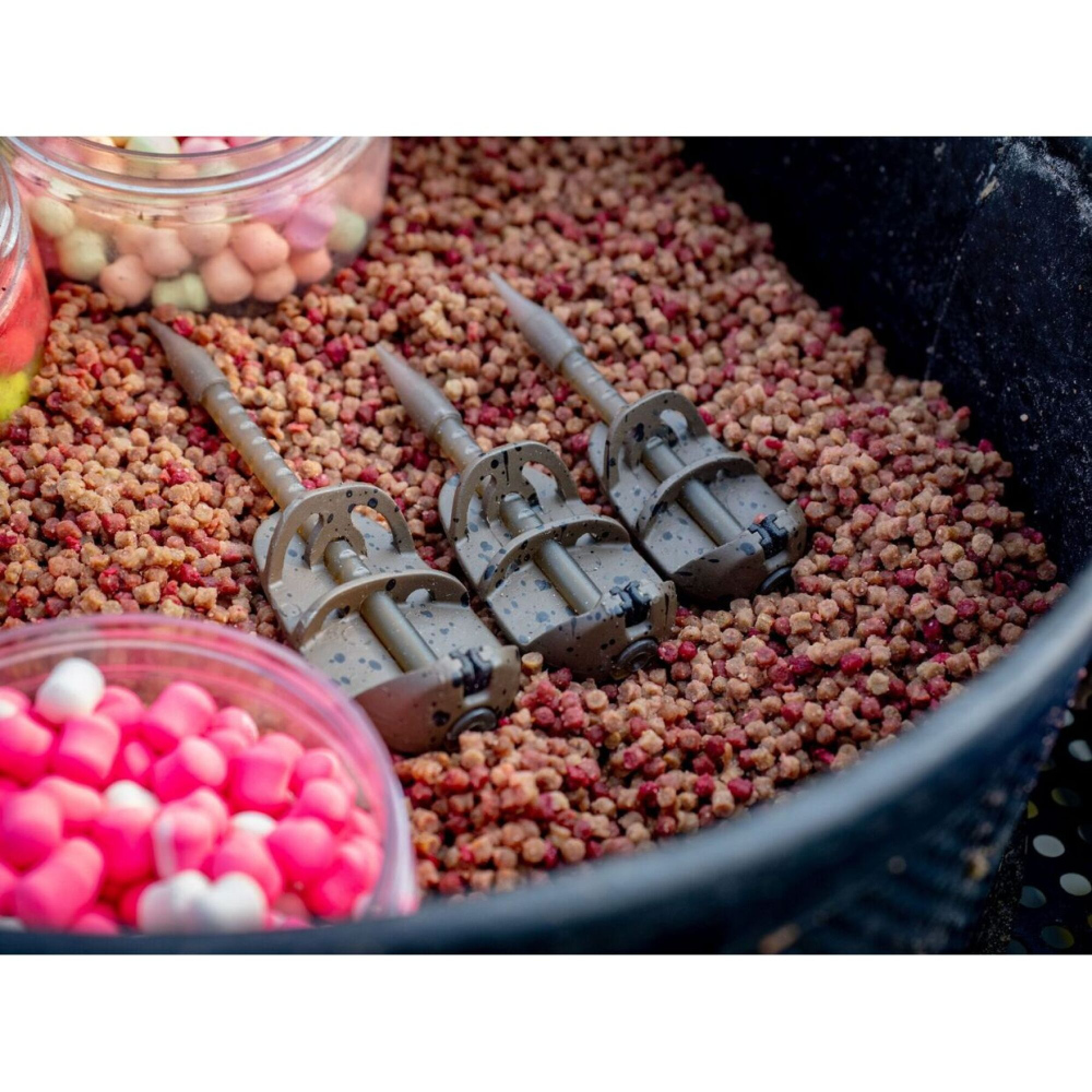 Unikátní navržení šikmé základny přispívá k vytváření menšího výtlaku vody při dopadu na vodní hladinu. Díky ni nedochází k uvolnění návnady na krmítku a jejímu vypadnutí při dopadu při nahazování. Vyznačuje se i menším hlukem při kontaktu s vodní hladinou. Každé krmítko je vybaveno měkkou gumovou sponou, která zachovává délku háčku a zajišťuje, že háček zůstane po celou dobu na svém místě. Ta také umožňuje nastavit délku pro háček a směr hrotu háčku, kdy při zaseknutí se snadno uvolní ze sevření pro bezpečnost zaseknutí.