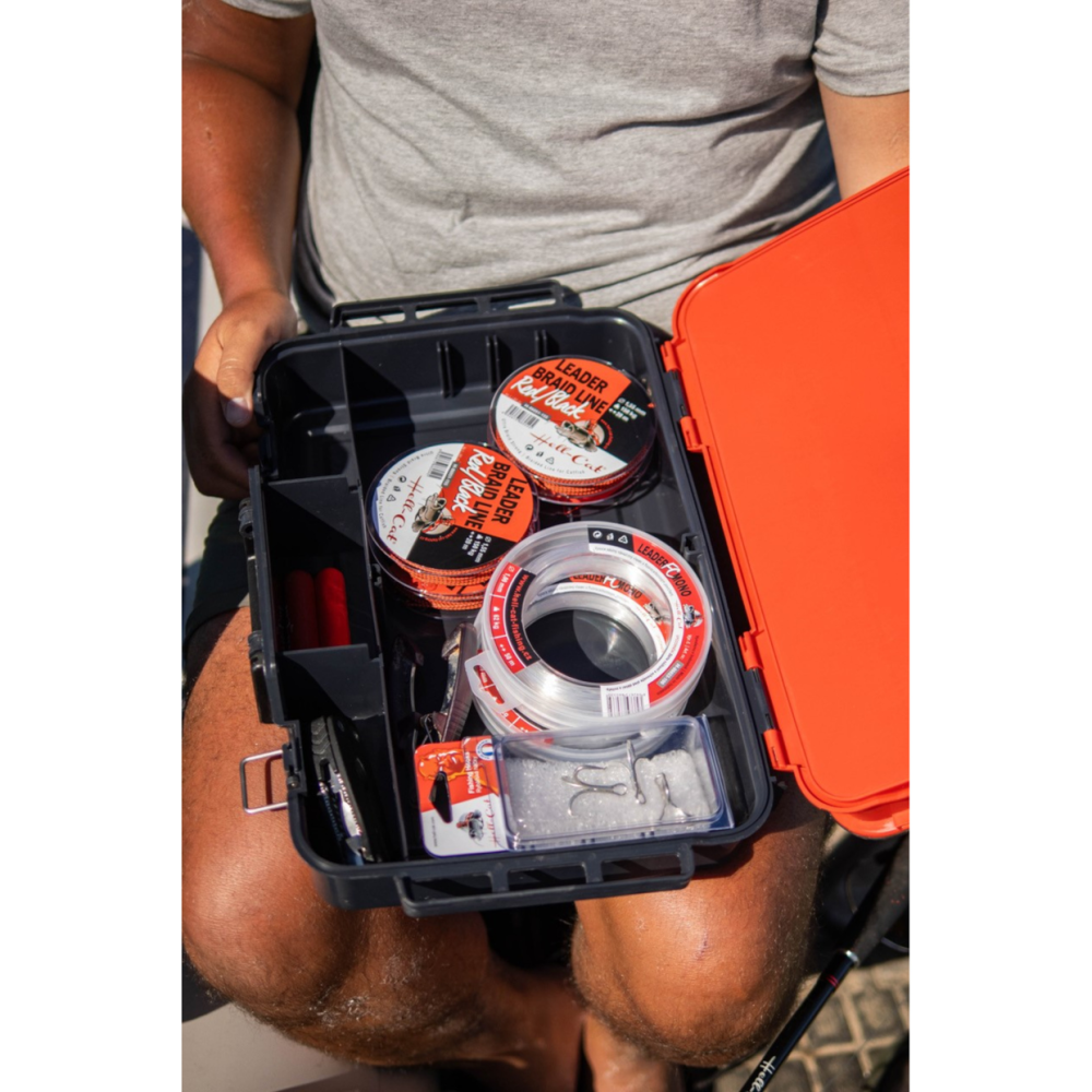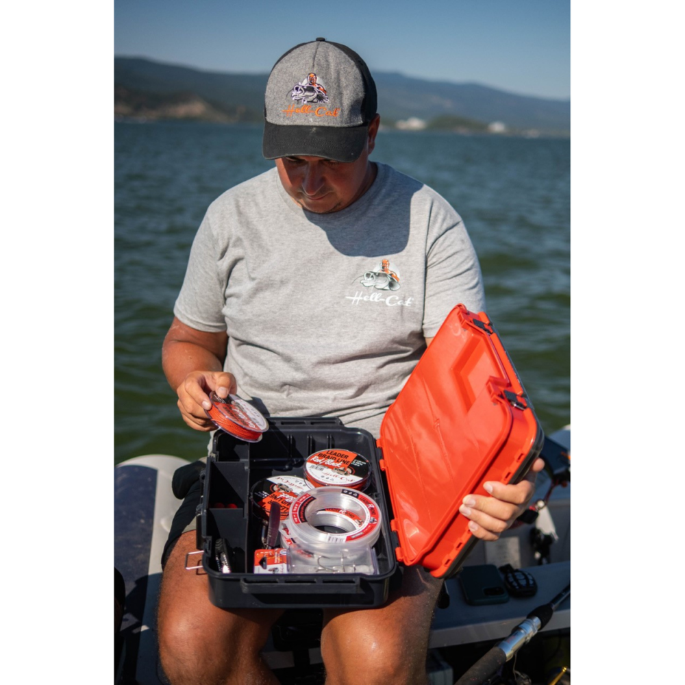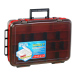 Praktický kufřík, který obsahuje dvě samostatně uzavíratelná patra, které uzamykají kovovými přezkami. Každé patro má nastavitelné přihrádky, spodní 9 větších a vrchní 18 menších.Na bocích jsou dva manipulační úchyty, a ve vrchní čísti je hlavní madlo sloužící k přenášení kufříku.Kufřík je vyroben z kvalitního plastu a je voděodolný, což ochrání rybářské doplňky před nežádoucí korozí.
