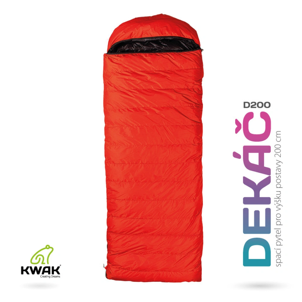 Chystáte se na kempování, na chatu do přírody či do hausbótu? Důležité je myslet na to, abyste se spokojeně vyspali i mimo domov, aby Vám nebyla v noci zima nebo abyste nepromokli. Univerzální a pohodlný dekový spacák Vám zabezpečí maximální komfort při spaní v každém ročním období. Lze ho zcela rozložit a použít i jako deku. To a mnohem víc Vám nabízí Spací pytel Dekáč D200 od značky KWAK s nanotechnologií. Spací pytel je určen pro postavu do výšky 200 cm.