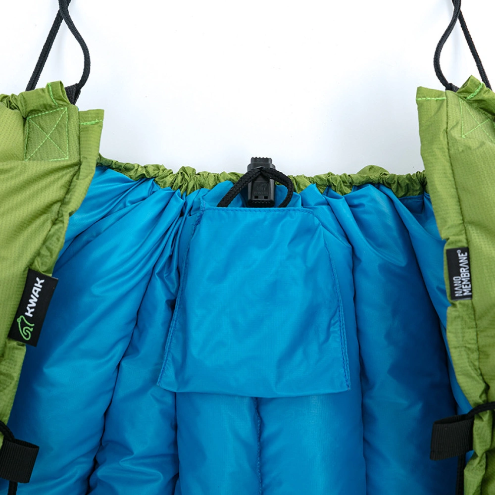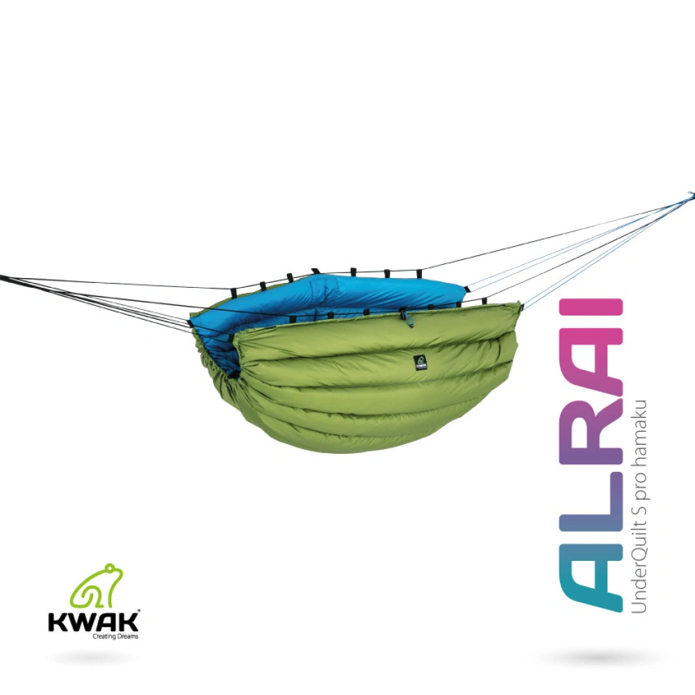 KWAK UnderQuilt Alrai S je ideálním doplňkem pro spánek v hamace. Jedná se o spodní zateplení těla, které je zavěšené pod hamakou a vytváří tak vzduchovou mezeru, čímž zaručuje maximální izolaci a tepelný komfort. UnderQuilt brání proudění chladného vzduchu a eliminuje tak tzv. ,,syndrom studeného zadku’’. Má voděodolnou povrchovou úpravu a je plněný nejkvalitnějším husím peřím. UnderQuilt Alrai S od značky KWAK s nanotechnologií vřele doporučujeme každému, kdo se chce komfortně vyspat v hamace na podzim nebo v zimě.