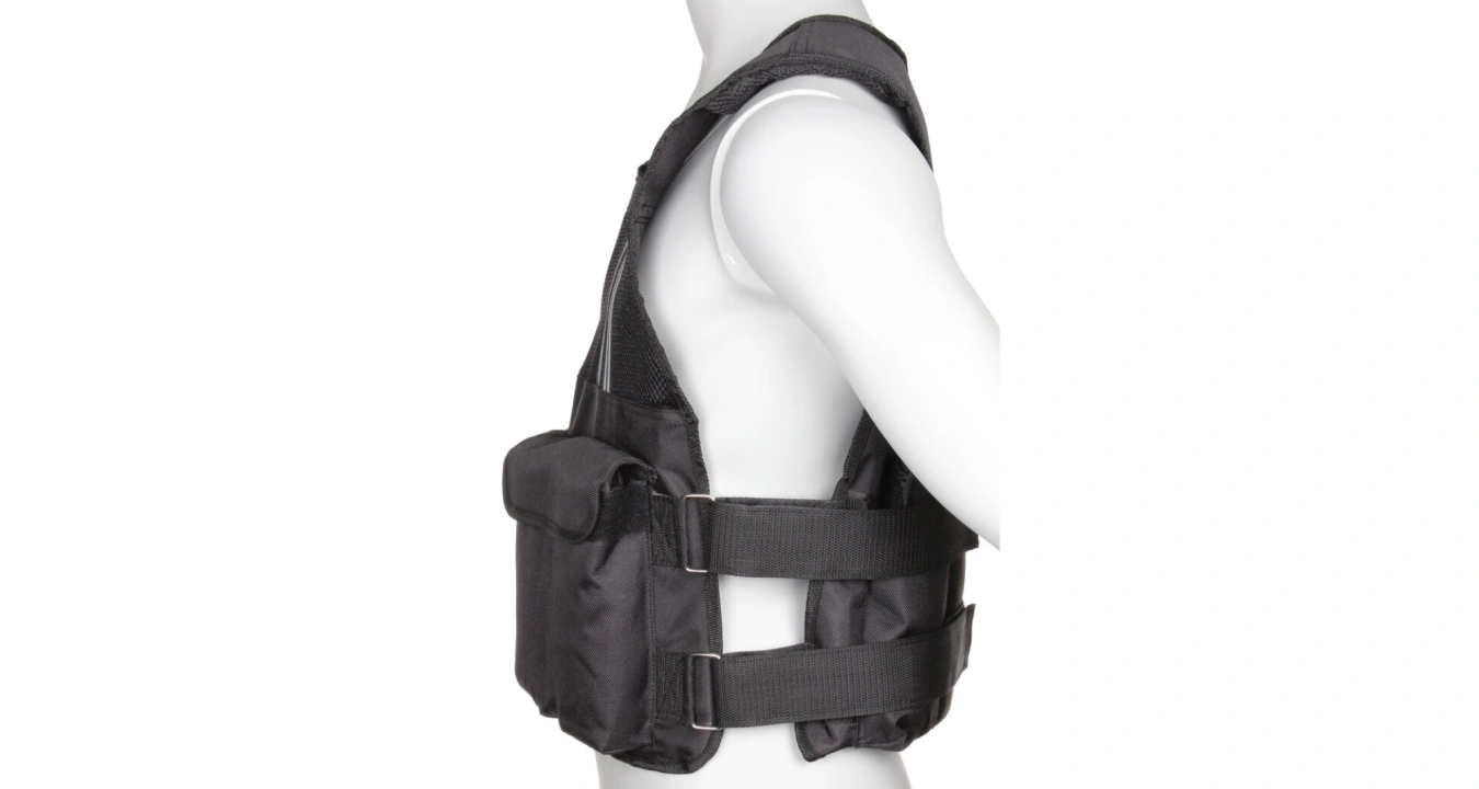 Prémiová fitness vesta z odolného materiálu, s hmotností 10 kg nebo 20 kg a jednoduchým upínacím systémem.