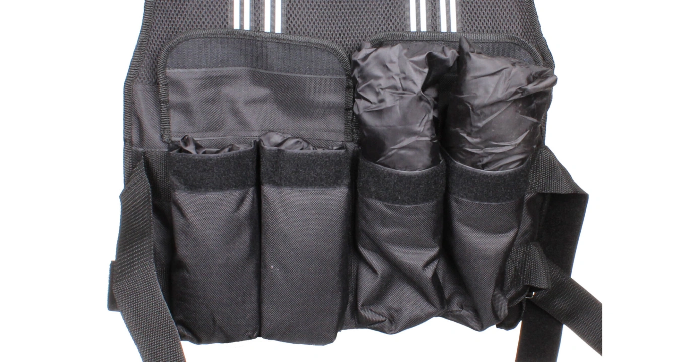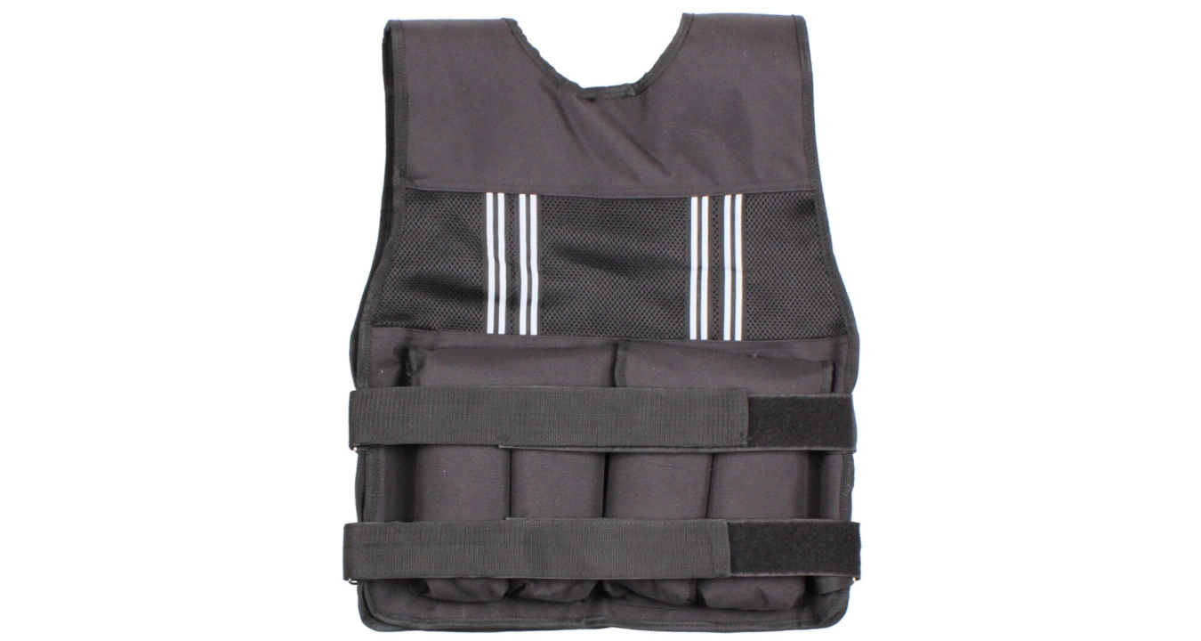 Prémiová fitness vesta z odolného materiálu, s hmotností 10 kg nebo 20 kg a jednoduchým upínacím systémem.
