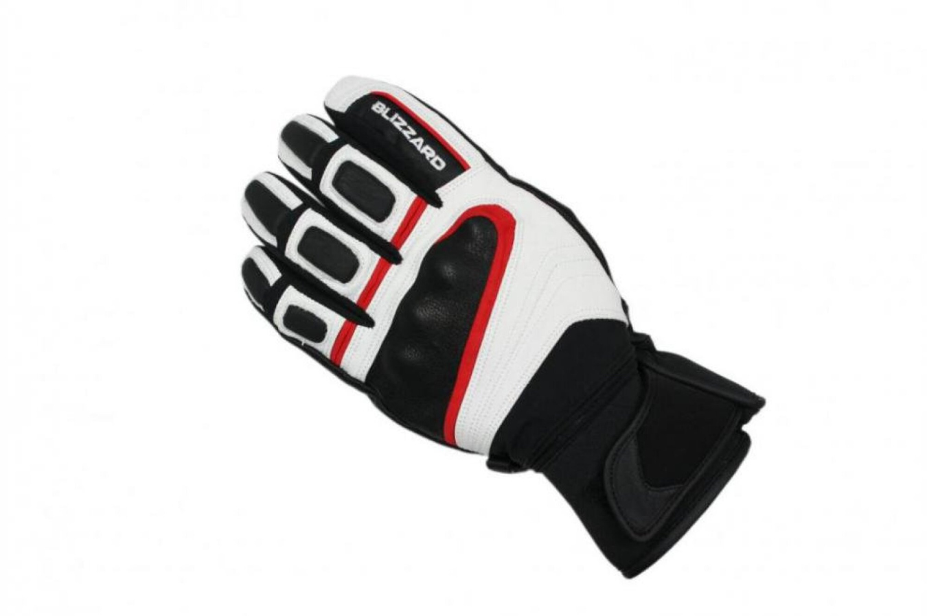 Kožené závodní rukavice s chrániči, elastickými panely pro vyšší komfort, zesílenou dlaní s protiskluzovým potiskem a membránou.