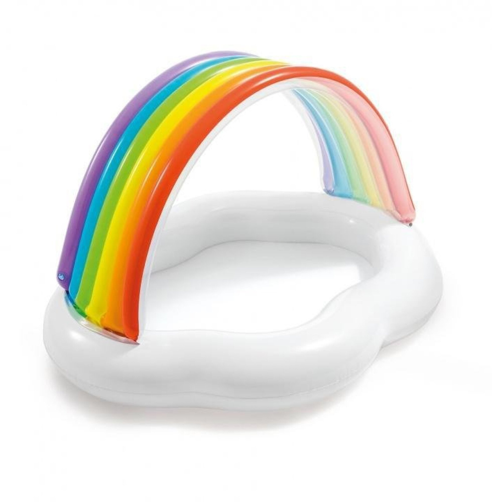 Je dětský nafukovací bazén s motivem duhy. Nač se v horkém létě mačkat na koupališti. Nafukovací bazény vám zaručí příjemné osvěžení v pohodlí vašeho domova. Letní vedra pro vás přestanou být problém. Nafukovačka je vhodná jako brouzdaliště pro děti. Výhodou je také stříška přes bazén, která zvyšuje komfort dítěte a přináší možnost vytvoření stínu přes horké letní poledne.