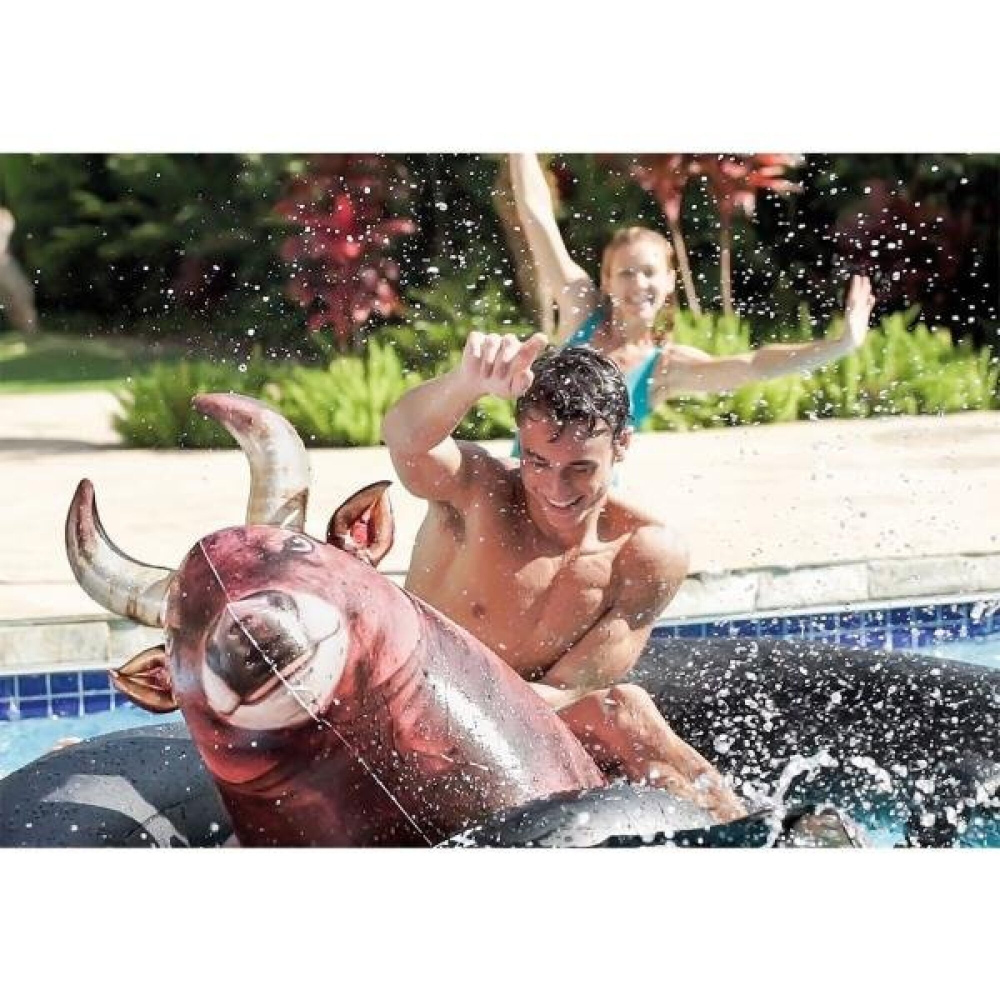 Nafukovací býk od společnosti Intex je navržený s inovativní technologií fotorealistického tisku a je součástí kolekce Intex Summer 2018. Soutěžte s rodinou a přáteli a uvidíte, jak dlouho se udržíte na býku. Obsahuje tři vzduchové komory a pevné rukojeti. Jednou z hlavních výhod je kvalitní vinyl o tloušťce 0,45 mm.