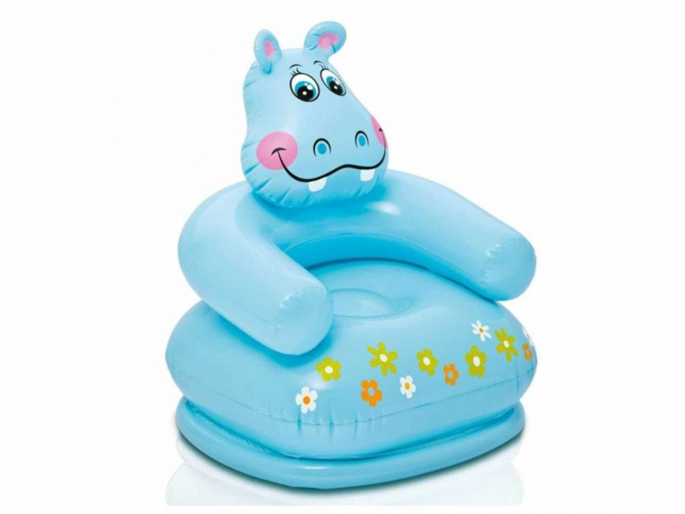 Dětské nafukovací křesílko s hlavou oblíbených zvířátek. Skvěle se hodí do všech dětských pokojů. Pohodlně se usaď a přečti si hezkou knížku, nebo se podívej na pohádku v televizi. Křeslo se hodí i na zahradu, pozvi kamarády a udělej párty!