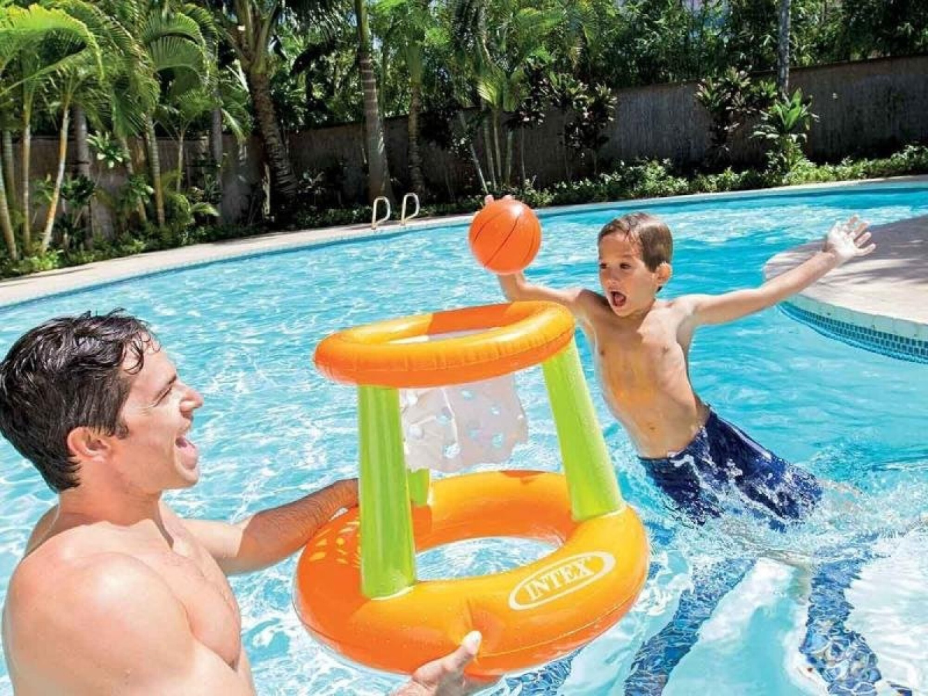 Oblíbený nafukovací koš na vodní radovánky pro děti i dospělé. Koš pluje po hladině a cílem je trefit se. Balení zahrnuje nafukovací basketbalový míč.