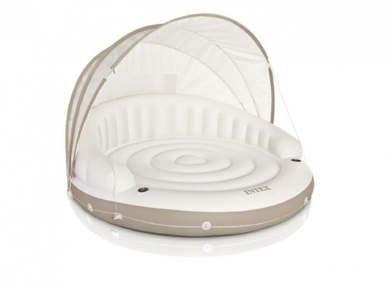 Je luxusní nafukovací lehátko/křeslo o průměru 199 cm, které je vybaveno odnímatelnou stříškou a 2 integrovanými držáky na nápoje. Je to vlastně taková nafukovací lenoška se sítí pro ten nejluxsusnější relax jakého se vám může na lehátku dostát. Ať už ve velkém bazénu na zahradě nebo v moři na dovolené si můžete připadat jako v 5ti hvězdičkovém hotelu.