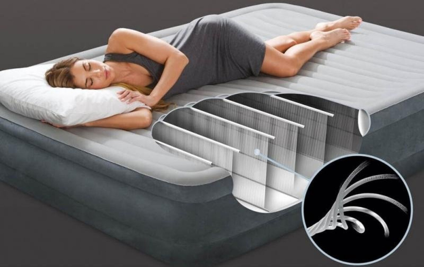 Matrace je udělána podle inovační technologie Dura-Beam, kterou patentovala firma Intex. Obsahuje tisíce umělých vláken, díky kterým, matrace se lehce přizbůsobuje k formě těla. Zajišťuje podporu zad a pomáhá aktivní regeneraci během spánku. Díky vestavěné elektrické pumpě, nafouknete matraci během 3 minut. Pumpa dopomáhá také k rychlejšímu vypouštění vzduchu, také proto je montáž i demontáž opravdu jednoduchá pro každého. V balení najdete také přepravní tašku na matraci.