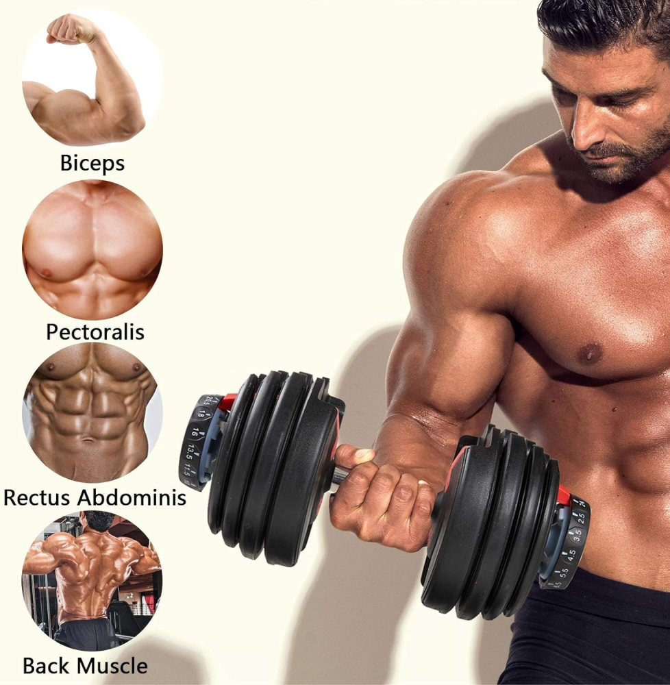 Činku lze nastavit na hmotnosti (kg): 2.5/3.5/4.5/5.5/6.5/8/9/10/11.5/13.5/16/18/20.5/22.5/24 KG