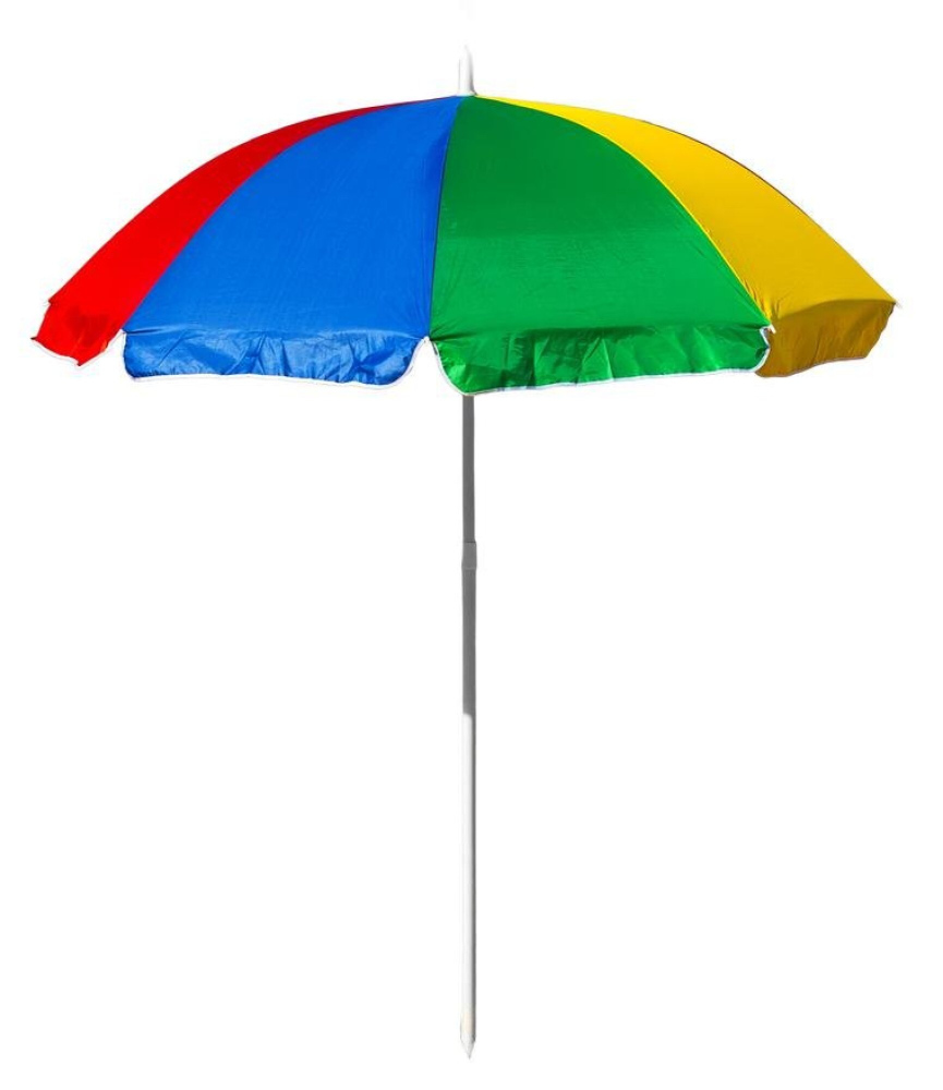 Čtyřbarevný plážový slunečník s ocelovou konstrukcí. Slunečník je díky své pevné ocelové konstrukci a kvalitnímu nylonovému potahu, odolný vůči povětrnostním vlivům, díky čemuž si Vy budete moct užít den na slunci i při tom nejostřejším počasí.