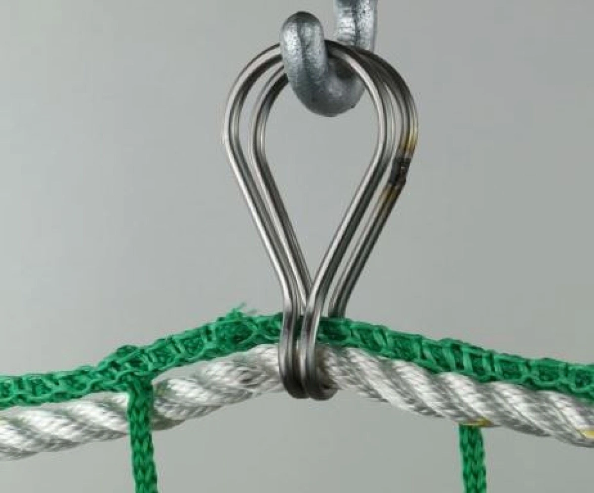 Vhodné jako kotvící bod na síti k zavěšení záchytné sítě ke konstrukci.