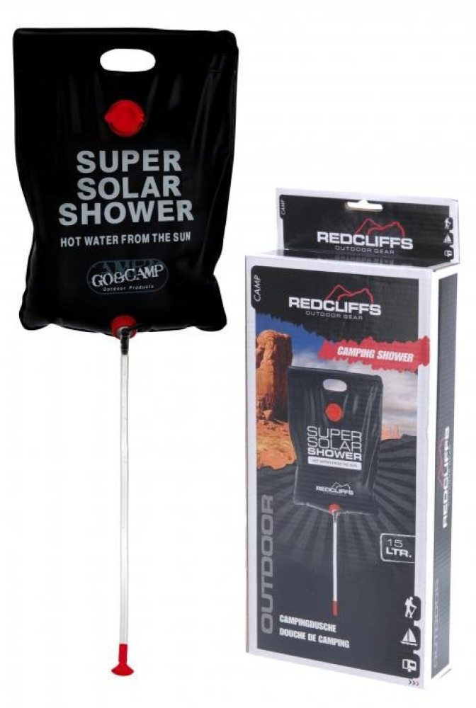 Solární sprcha značky RedCliffs je praktickou pomůckou pro komfortnější kempování. Solární sprcha je ekologická a rychlá cesta jak si dopřát teplou sprchu v kempu, na chatě nebo na cestách. Sprcha má praktický otvor na zavěšení a zásobník o objemu 15 litrů.