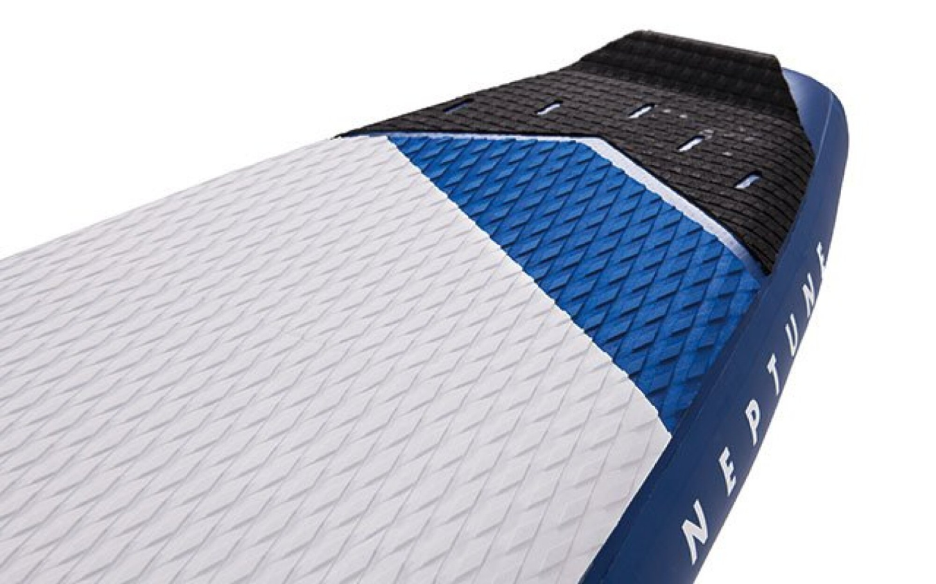 Paddleboard Aztron Neptune není jen samotné prkno. Disponuje spoustou doplňků, které zpříjemní samotné pádlování i třeba přenos boardu. Pod elastické bungee šňůry můžete upevnit lehký náklad, který nechcete nechávat na břehu. Protiskluzová EVA podložka s hlubokou "diamantovou" strukturou po téměř celé ploše prkna poskytne maximální grip a minimalizuje riziko uklouznutí. Nemusíte se ale bát ani když k uklouznutí dojde. K noze a nerezovému D-kroužku jednoduše připevníte bezpečnostní leash a paddleboard vám nikam neuplave. Vyvýšený zadní protiskluzový nášlap vám umožní efektivně měnit směr jízdy. Jistě potěší i pevné madlo pro pohodlné přenášení SUPu.