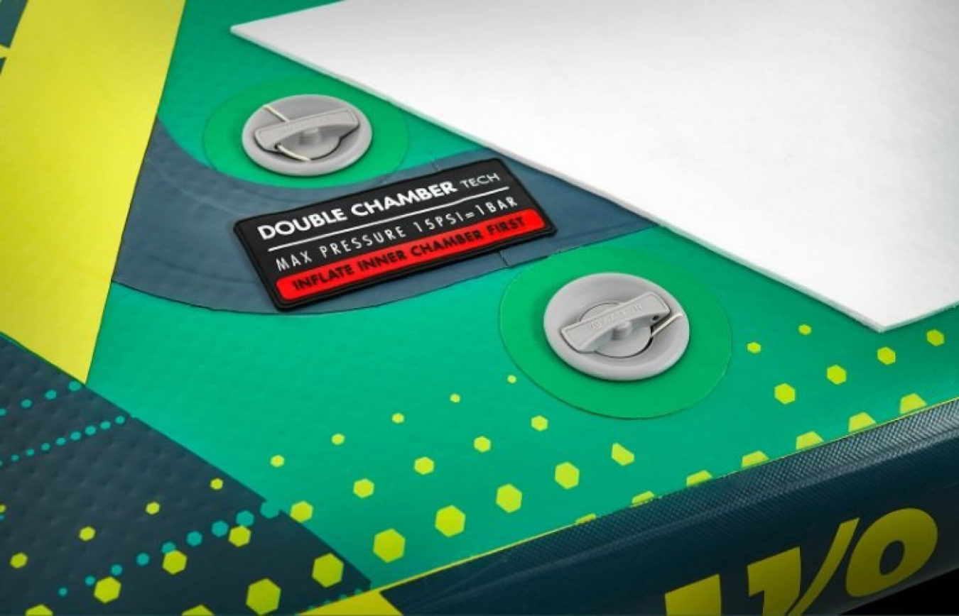 Dokonale bezpečná Aztron Double Chamber konstrukce je poznávací technologií značky Aztron a je použitá na všech Aztron nafukovacích paddleboardech. Dodatečná nafukovací komora dodává paddleboardu Aztron až 60 litrů bezpečnostní rezervy, která efektivně zajistí bezpečnost jezdce. Vnitřní nafukovací komora s extra vzduchovými pilíři je umístěná pod stojnou plochou a dodává paddleboardu až o 30 % více tuhosti. Díky technologii Double Chamber se budeš i na nafukovacím paddleboardu cítit jak při jízdě na pevné desce.
