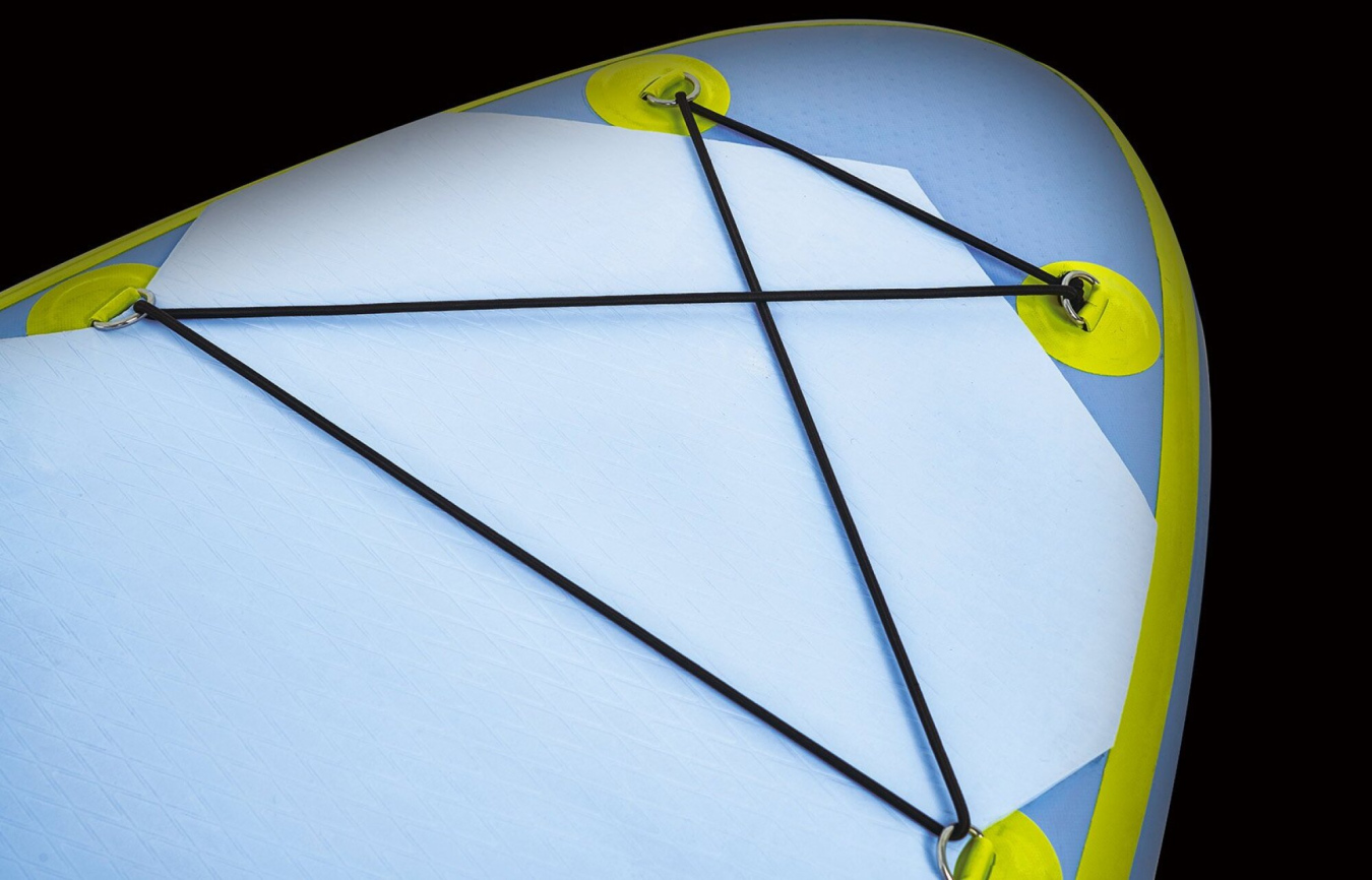 Flexibilní lanka na přídi plováku, díky kterým si na paddleboard můžete uchytit osobní věci.