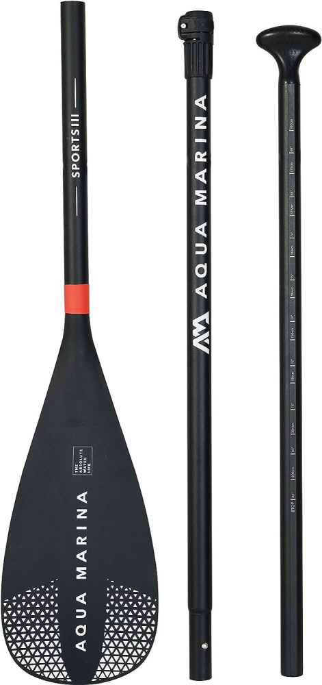 Pádlo určené pro paddleboard Aqua Marina SPORTS III ALU 3D. Plastový list je vyztužený laminátem, čímž se zvyšuje jeho odolnost. Žerď je nastavitelná v rozsahu 165 - 210 cm.