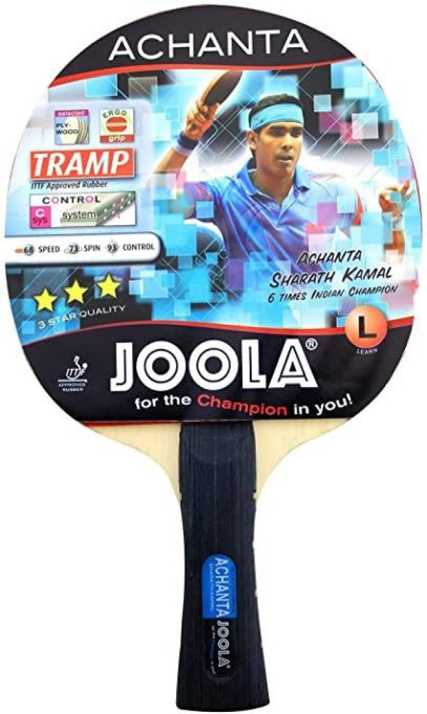 Velmi kvalitní pálka na stolní tenis od značky Joola. Pingpongová pálka Joola ACHANTA vyniká potahem Joola schválenými Mezinárodní federací stolního tenisu (ITTF). Pálka je ideální zejména pro začínající hráče. Ergonomický tvar rukojeti zaručuje pohodlné držení. Rukojeť je tvořená z 5-ti vrstvé překližky. Rozšířený tvar rukojeti zaručuje pohodlné držení a nehrozí vyklouznutí pálky.