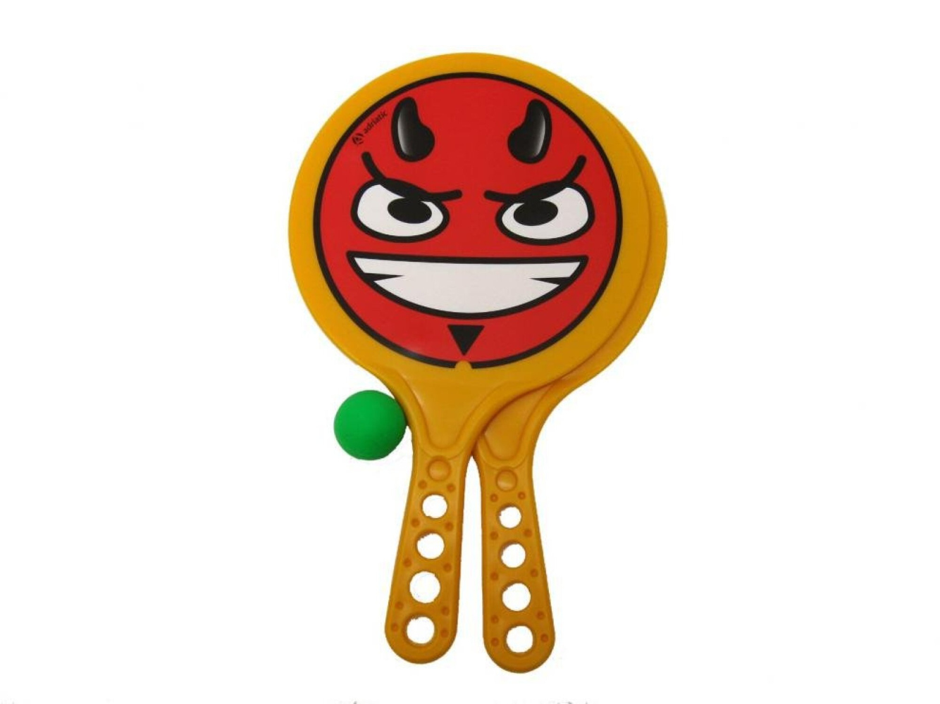 Sada plážový tenis Smajlíci obsahuje 2 pálky (velikost 37 cm) a 1 míček. Pálka je lehká a dobře se s ní manipuluje. Hra je vynikající zábavou na dovolené (např. u moře na pláži) nebo i na zahradě. Určeno pro děti i dospělé.