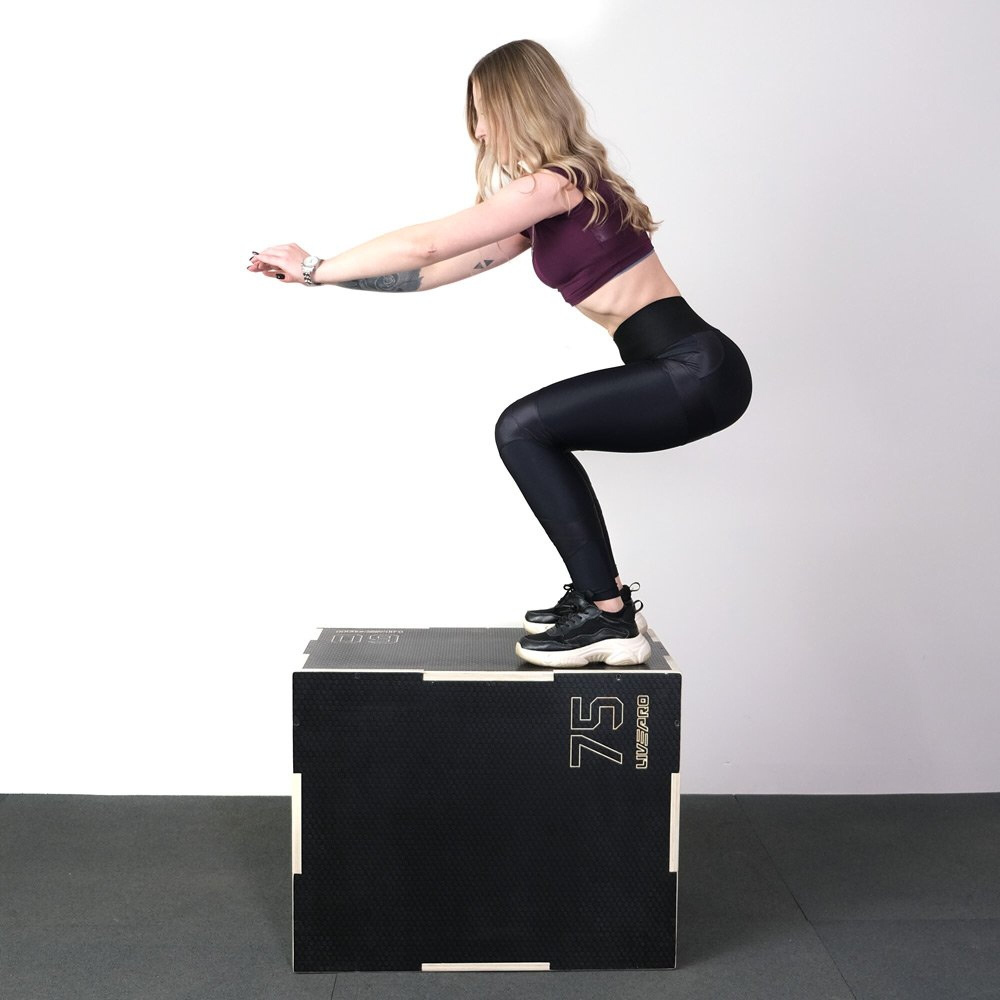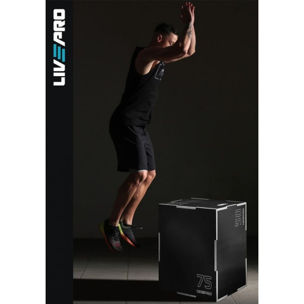 Plyometrický box LivePro je bedna určena pro kondiční trénink. LivePro Plyobox je nedílnou součástí každého crossfitového centra, pomůckou profesionálních sportovců i atletů. Rapidně zlepšuje výbušnou sílu a celkovou stabilitu. Nabízí svými třemi různě dlouhými stranami ideální výšku na výskoky pro každého. Různé výšky jsou určeny na plyometrické cvičení nebo na CrossFit, přičemž každá výška představuje jiný stupeň obtížnosti. Tři označení výšky na stranách Plyo Boxu vám usnadní hledání té správné výšky při cvičení. Skvělý doplněk domů i do posilovny. Vhodné pro využití k posilování většiny svalů na těle. Plyobox je vyroben z odolné překližky o tloušťce 1,8 cm a jeho povrch je zakončen protiskluzovým vzorem, takže trénink bude ještě bezpečnější. Pro zvýšení stability boxu jsou sousední strany navzájem spojeny a zaklíněny. Sestavení plyoboxu zabere pouhých pár minut.