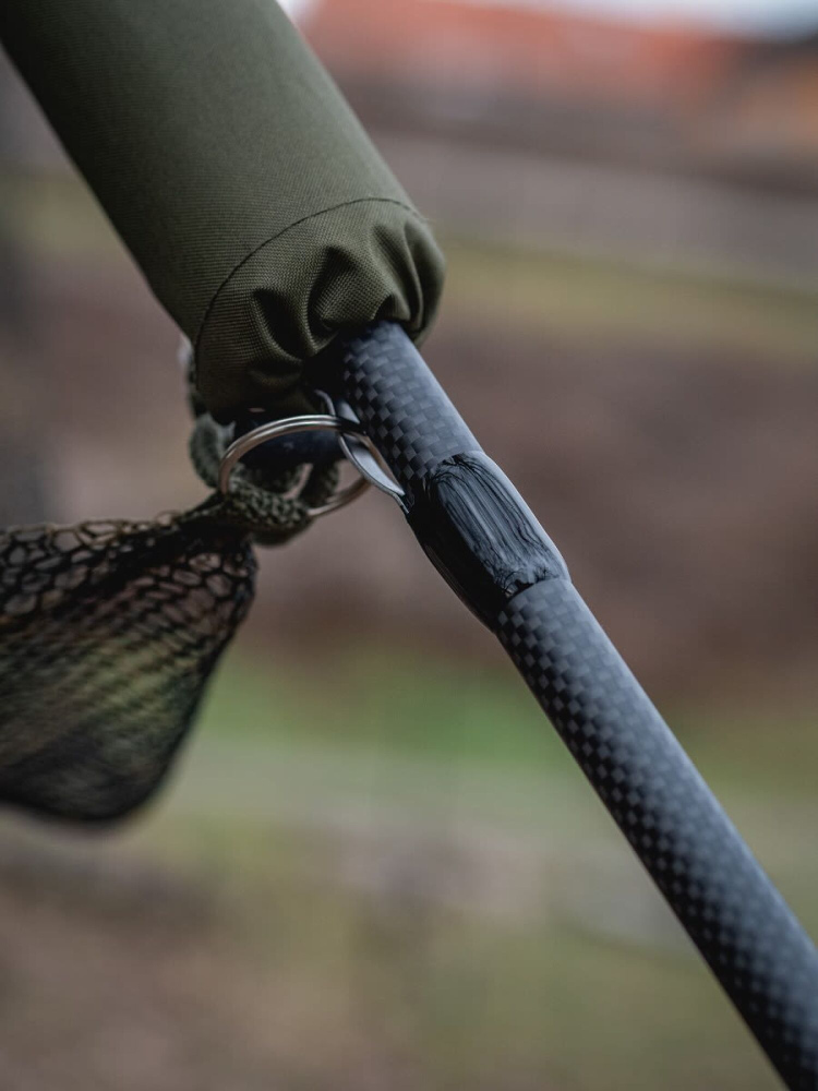 Příjemně lehký, ale přitom pevný podběrák je osazen jemnou a rychleschnoucí maskáčovou síťkou. Minimalistický kovový kříž, klip na uchycení síťky a plovák podtrhují vysoké kvality tohoto výrobku. Síťka má v rozích ramen výztuhu, aby se zabránilo nežádoucímu prodření a bude se dát samostatně dokoupit v průběhu měsíce května.