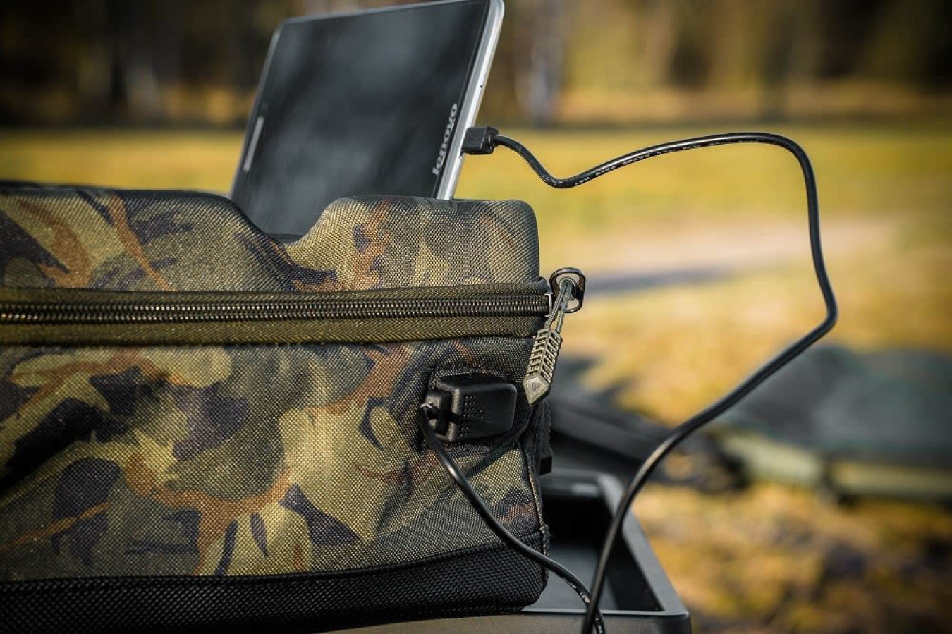 - Vhodné pro nabíjení elektroniky a zboku průchozí kabel s USB koncovkou