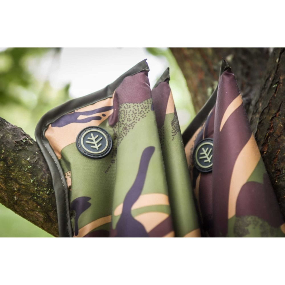 Díky šikovnému a praktickému designu Over-Fit pouzdro nepotřebuje žádné zipy. Extra vypolstrovaná spodní část pouzdra je napojena na komoru pro navijáky, která je opatřena jednoduchým, avšak velmi účinným stahovacím systémem. Je tedy velmi praktické a jednoduché se okamžitě dostat do nitra pouzdra bez zbytečného zipování. Ušetříme si tím čas a definitivně i nervy. V pohodě uskladní v sobě pruty o délkách 9ft (2,70m) až 10ft (3,00m). Každé pouzdro je opatřeno polstrovaným popruhem přes rameno s logem Wychwood a dvěma extra velkými karabinami. Z čehož vyplívá, že karabiny mohou být použity jak individuálně, tak právě v kombinaci s tímto pouzdrem.