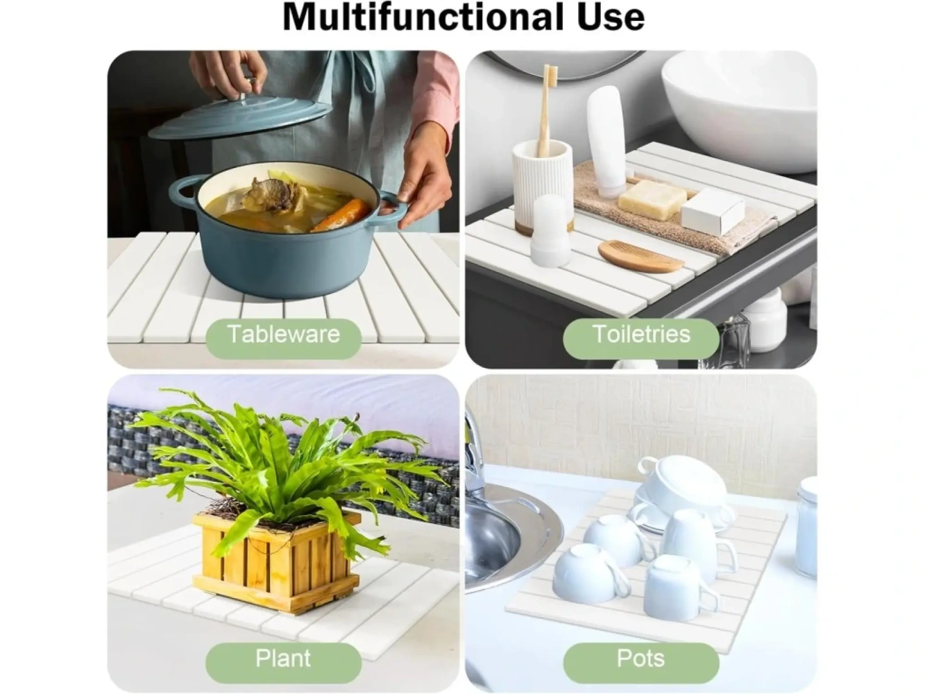 Hledáte kuchyňský doplněk, který bude zároveň praktický, hygienický a estetický? Skládací podložka z přírodní křemeliny v elegantní off-white neutrální barvě zvládne víc, než se na první pohled zdá. Nezabere téměř žádné místo, když ji právě nepotřebujete, a když ano, rozvine naplno svůj potenciál – absorbuje vlhkost, odvádí vodu a promění běžnou kuchyňskou linku v suchou a čistou zónu bez otěrů a kapek.