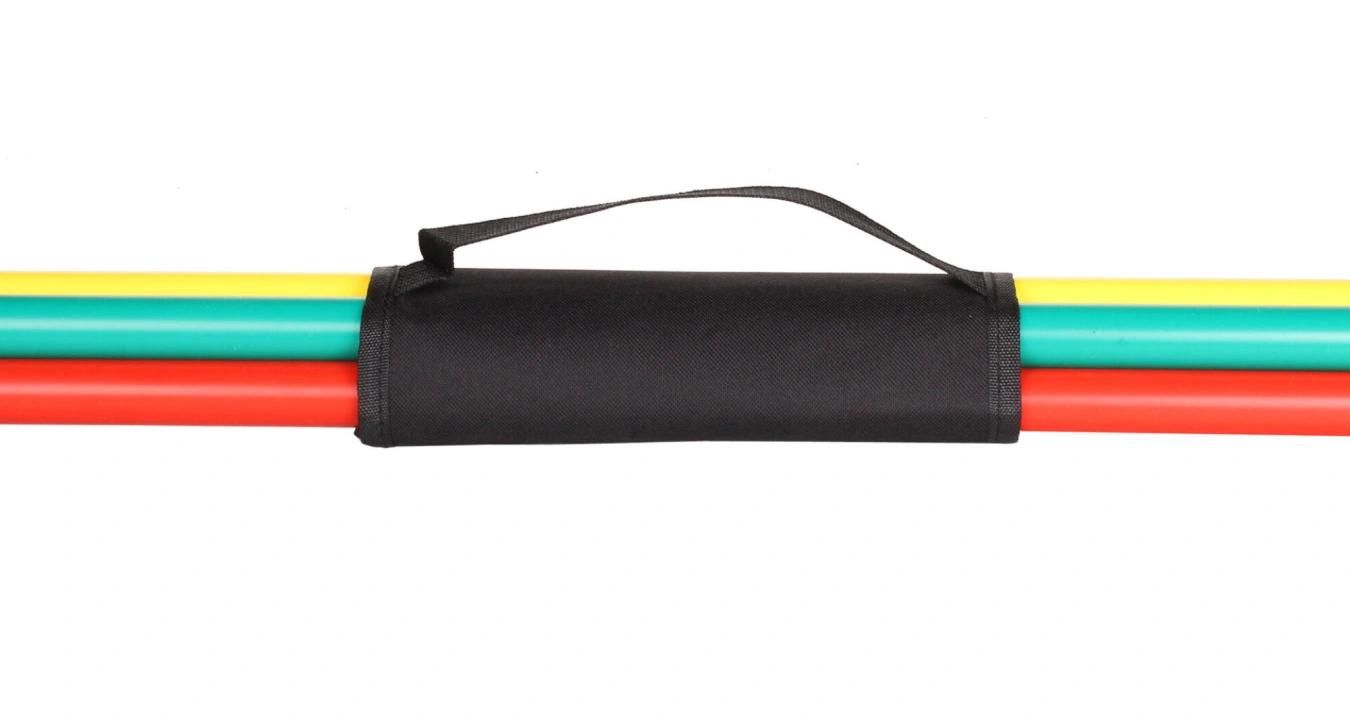 Stahovací polyesterový pás s poutkem a zapínáním na suchý zip určený pro jednoduché přenášení a uskladnění plastových překážek.