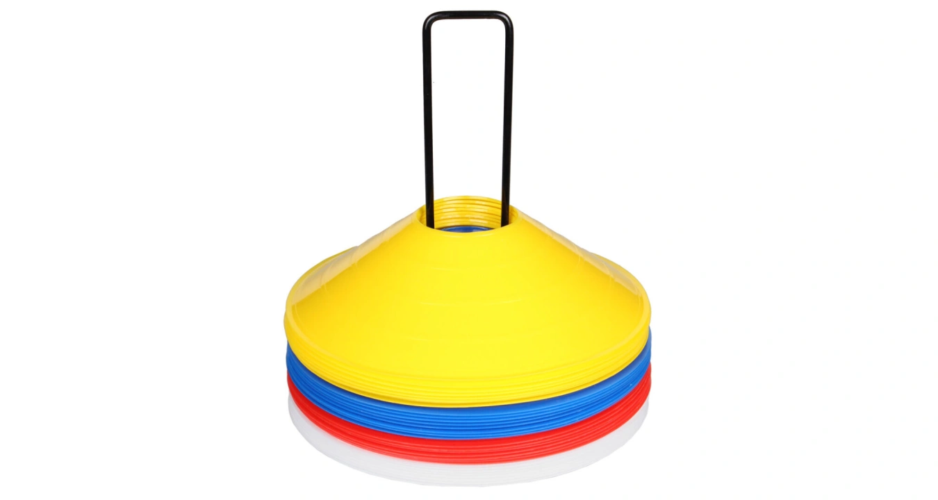 Univerzální kovový stojánek, vysoký 21 cm, pro padesát vytyčovacích met Merco je vhodný pro všechny kónické mety s průměrem otvorů od 5 cm do 8 cm.