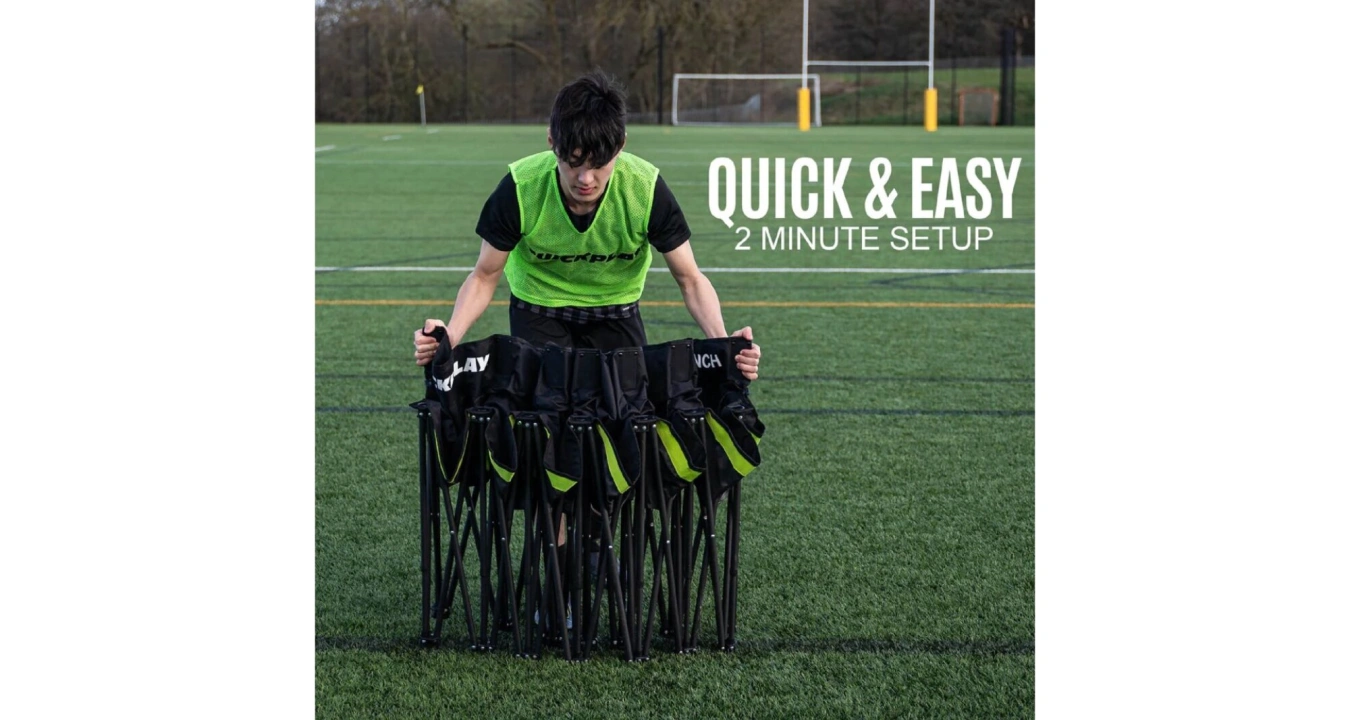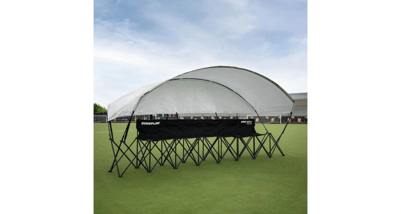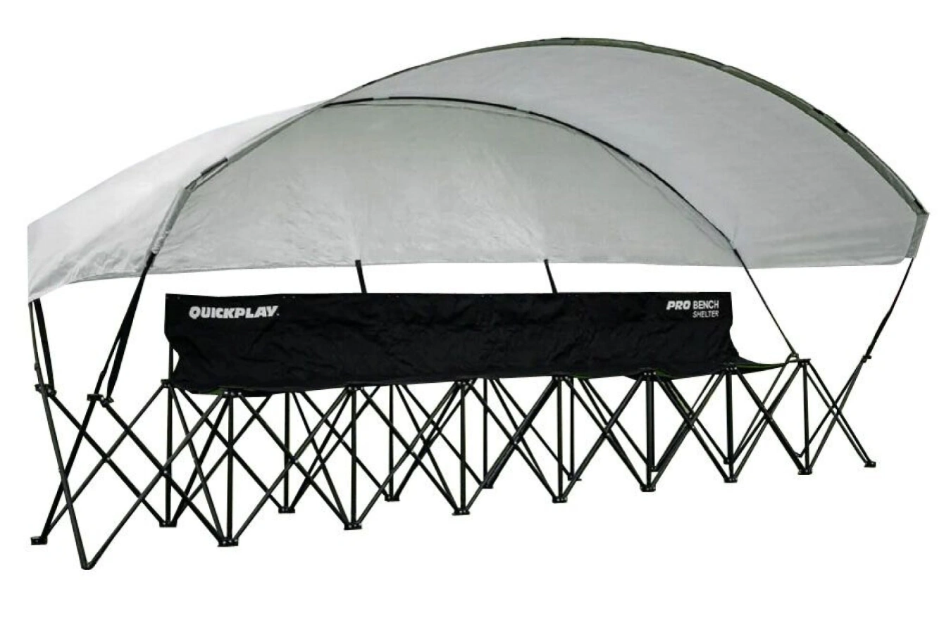 Skládací lavička s přístřeškem Quickplay Pro Bench představuje skvělé řešení pro různé venkovní aktivity, od sportovních zápasů až po kempování či společenské akce. Tato lavička je až pro šest lidí a díky její konstrukci ji rychle sestavíte a rozložíte. Odolná konstrukce s ocelovým rámem a zesílenými popruhy pod sedadly zaručuje, že lavička vydrží náročné používání a může bezpečně nést až 110 kg na sedadlo, je tedy vhodná pro dospělé i děti. Přístřešek je odolný proti vodě a větru a nabízí ochranu před sluncem (zátěr 50+ UPF). Navíc se snadno složí do přenosné tašky pro případný transport. Skládací lavičku s přístřeškem využijete pro sportovní i společenské akce, kempování, zahradní párty apod.
