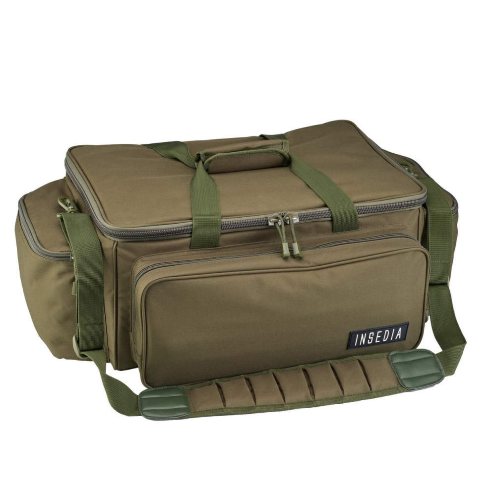 Obsahuje velkou hlavní komoru, která v pohodě uskladní izolační tašku Insedia od Prowess nebo další pouzdra na doplňky ze stejné řady zavazadel Insedia. Dále obsahuje 3 kapsy na zip, které jsou soustředěné po obvodu tašky. Nechybí ramenní popruh opatřený polstrováním pro komfortní nošení. Pro snadné přenášení pak slouží dvě madla, které lze spojit suchým zipem do sebe.