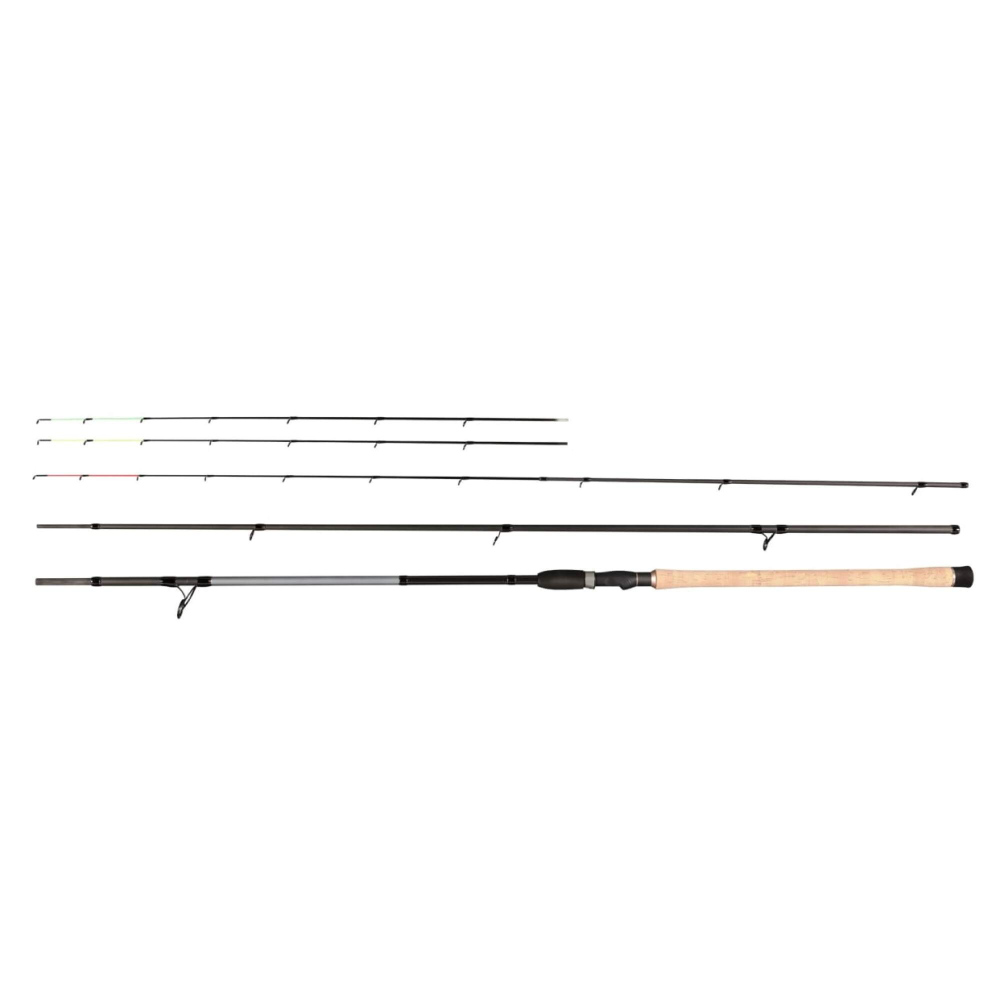 Blank prutu je vyroben z „High Modul“ uhlíkových vláken s označením 30T, který má středně rychlou akci MH. Proto tyto pruty s přehledem zvládnou odhazovat i větší krmítka. Prut je osazen moderními SIC očky ve tvaru písmene „K“ a velmi příjemným ergonomickým sedlem navijáku, které oceníte při souboji s Vaším úlovkem. Rukojeť v kombinaci přírodního korku a EVA pěny. Součástí tohoto prutu jsou výměnné špičky 2x grafitová 1,5 a 2,0 oz a 1x sklolaminátová 1,0 oz.