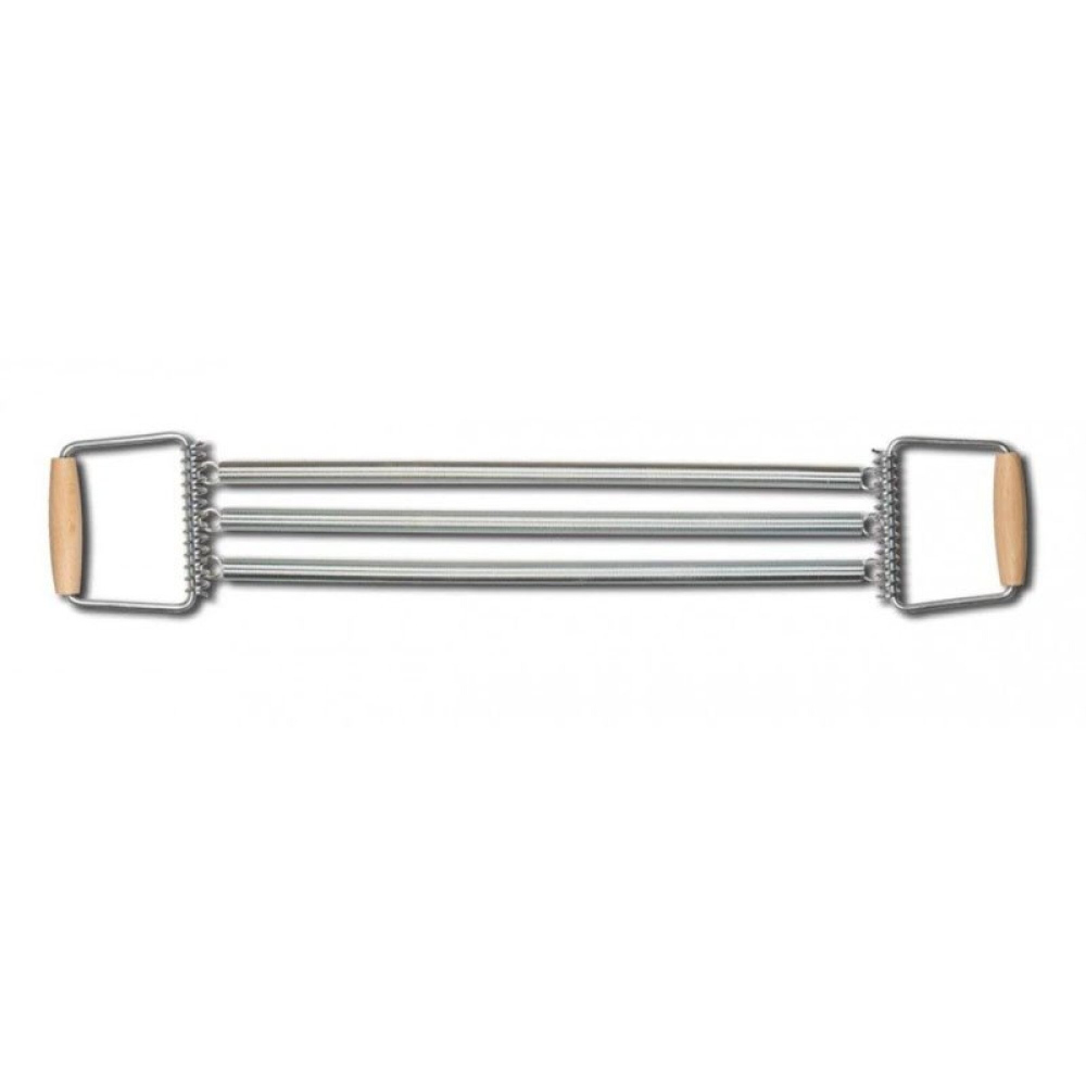 V setu 5 ks nerez pružiny včetně rámků s držadly. Madla masiv. Tah jedné pružiny odpovídá přibližně váze 6 kg závaží. Délka pružiny v nenataženém stavu 50 cm. Vhodné pro běžný trénink. Vše vyrobeno v ČR z kvalitních materiálů.