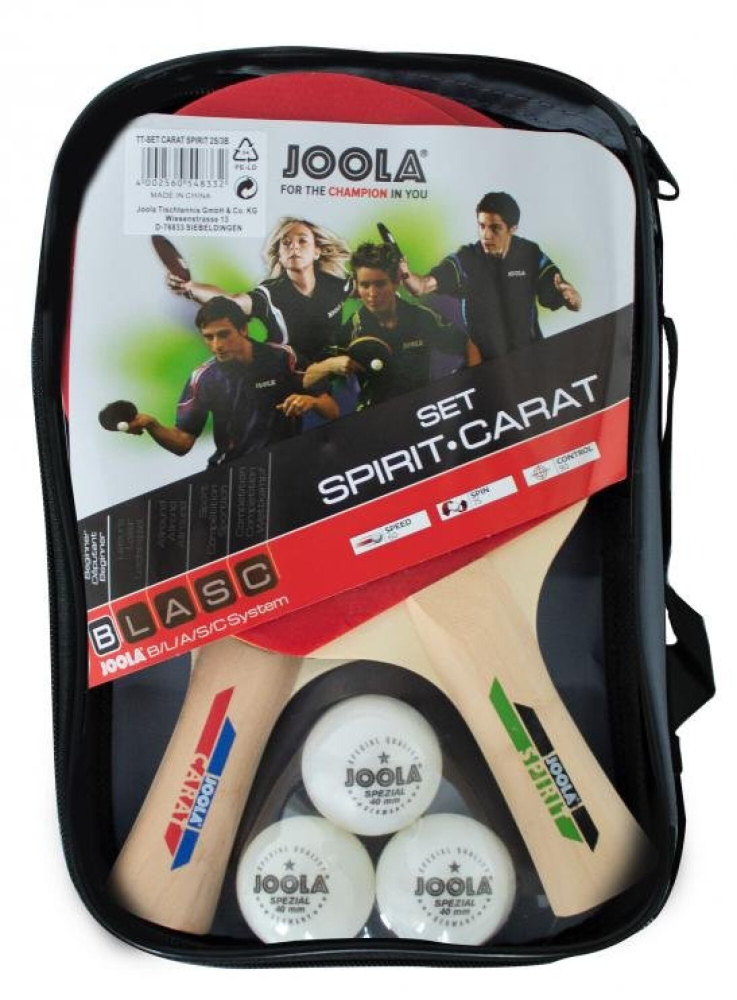 PI PO SET JOOLA SPIRIT 54833: Pěti dílná sada Spirit zahrnuje: dvě rakety, dva bílé a jeden oranžový míček. Vlastnosti: Rakety jsou vybaveny speciálním gumovým povrchem s tenčí a měkčí houbičkou pro lepší rotaci a kontrolu.