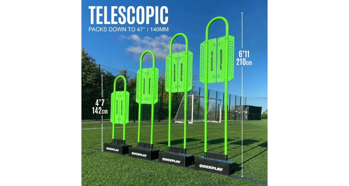 Tréninková figurína Quickplay Replay Defender Block je perfektní pomůcka pro každý fotbalový klub. Slouží k nácviku přesnosti přímých kopů, herních situací při zahrávání trestných kopů a zároveň i jako tréninková pomůcka pro fotbalové brankáře při těchto situacích. Velkou výhodou tohoto modelu je její nastavitelná výška pro 4 úrovně v rozmezí 125 - 189 cm. Výšku rychle a jednoduše nastavíte pomocí klasického PIN-UP systému.